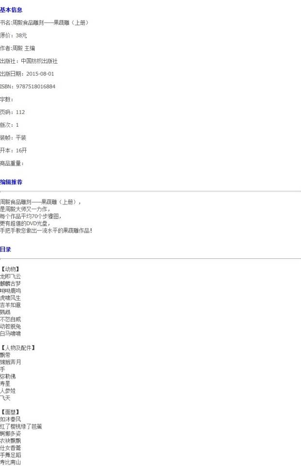 SJ:周毅食品雕刻——果蔬雕(上册) 周毅 9787518016884 中国纺