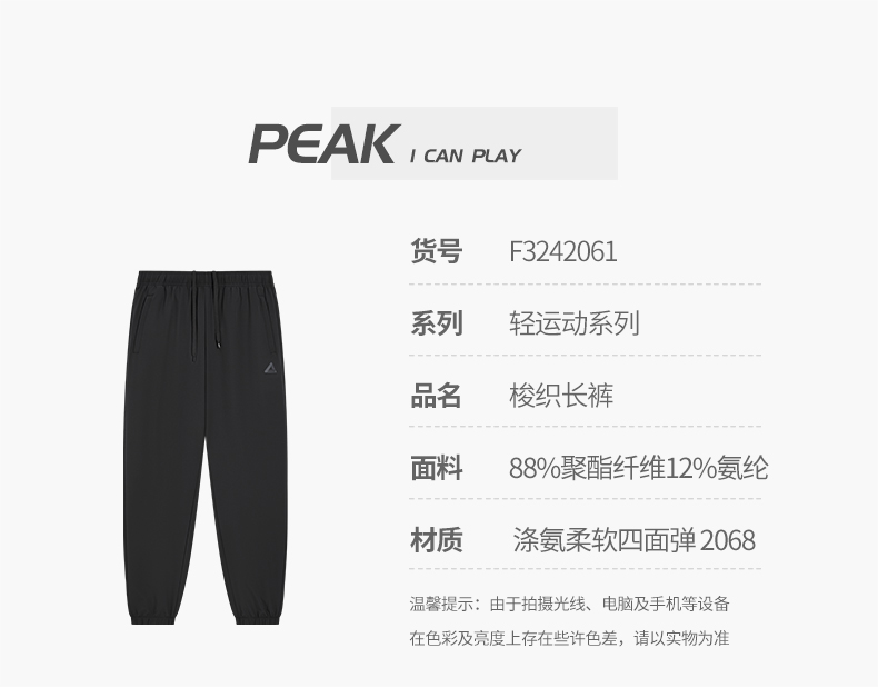 匹克2024年夏季新款轻运动系列男款梭织长裤F3242061