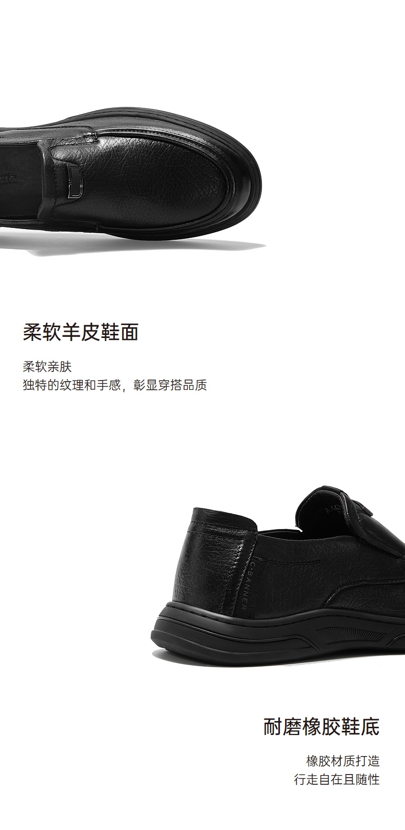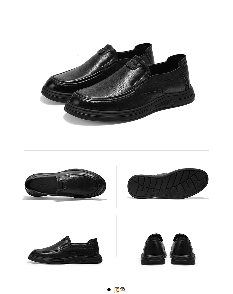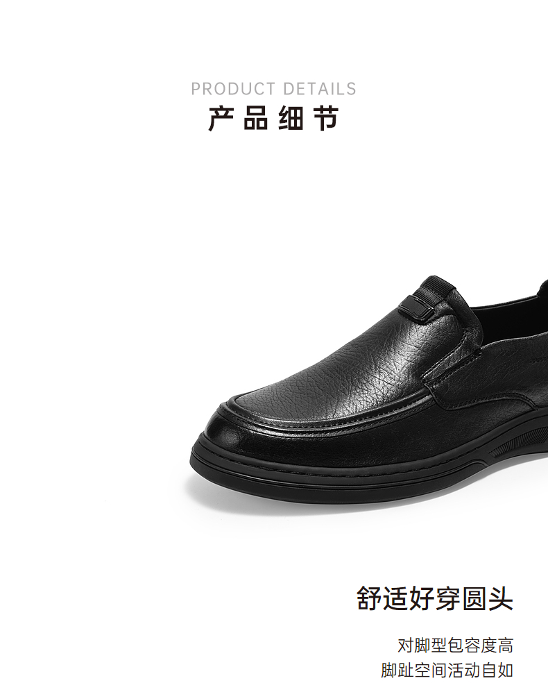 千百度男鞋轻奢一脚蹬真皮正装皮鞋春季百搭英伦风大头皮鞋A24424351