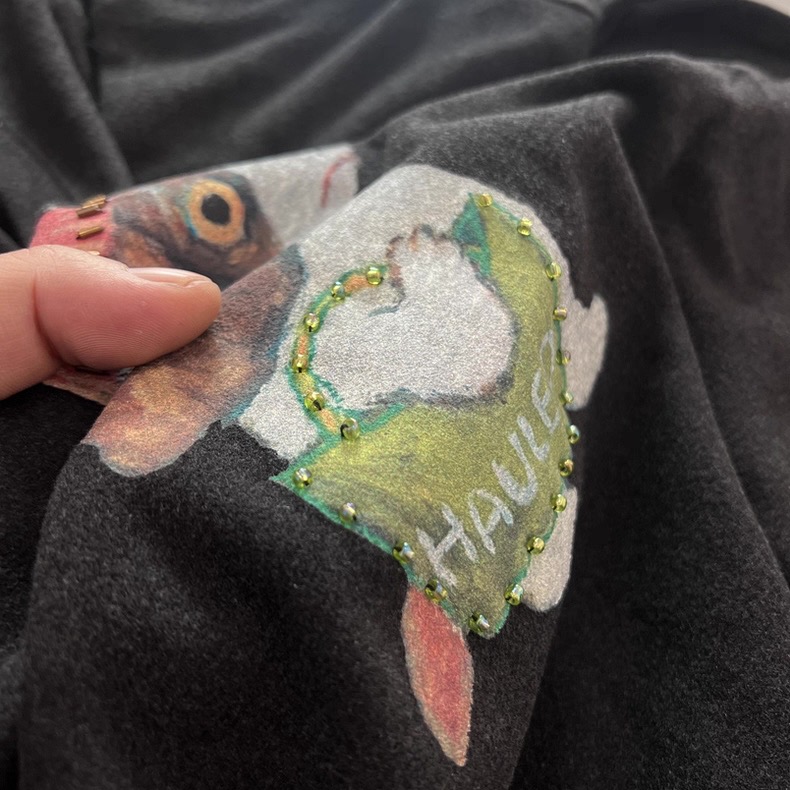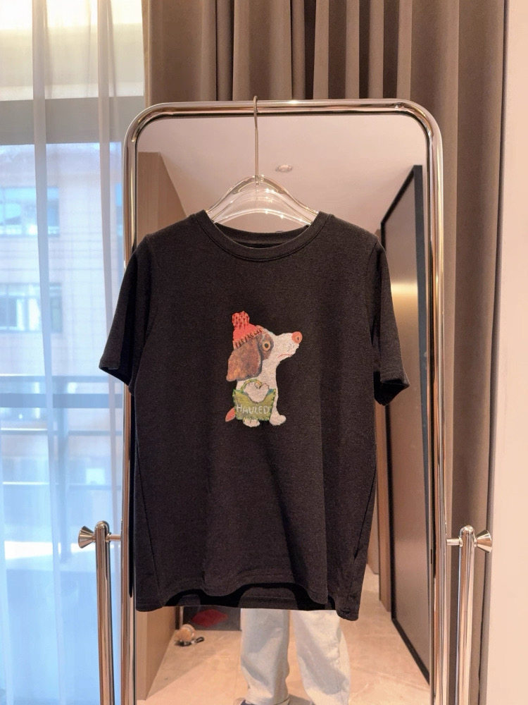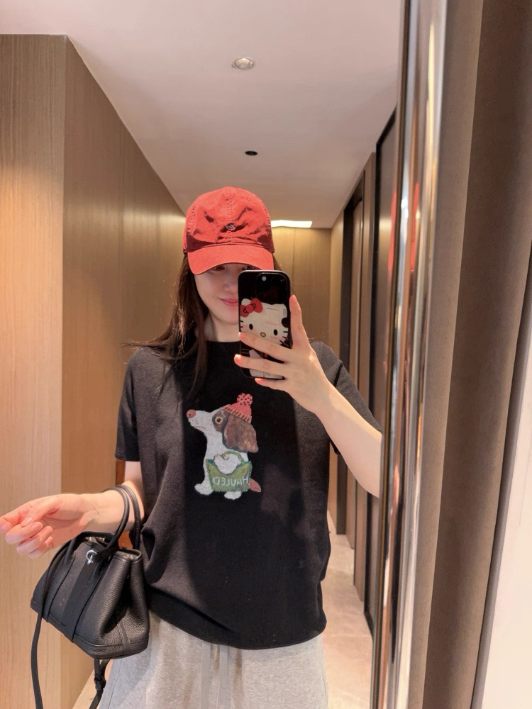 老米优品🎈3-5天。《小狗串珠双面澳绒短袖tee》复古少女既视感,轻松get韩系穿搭~ T260227A