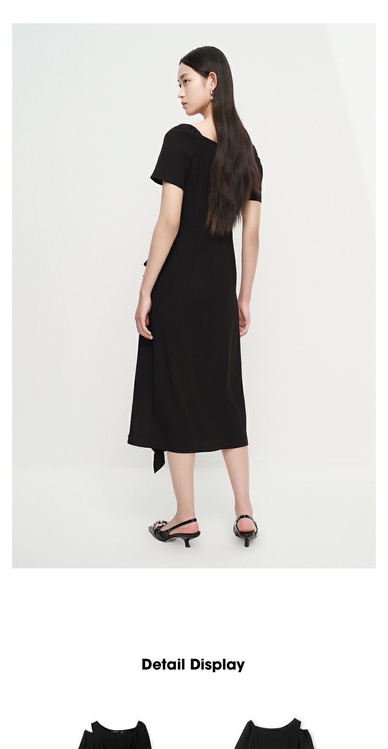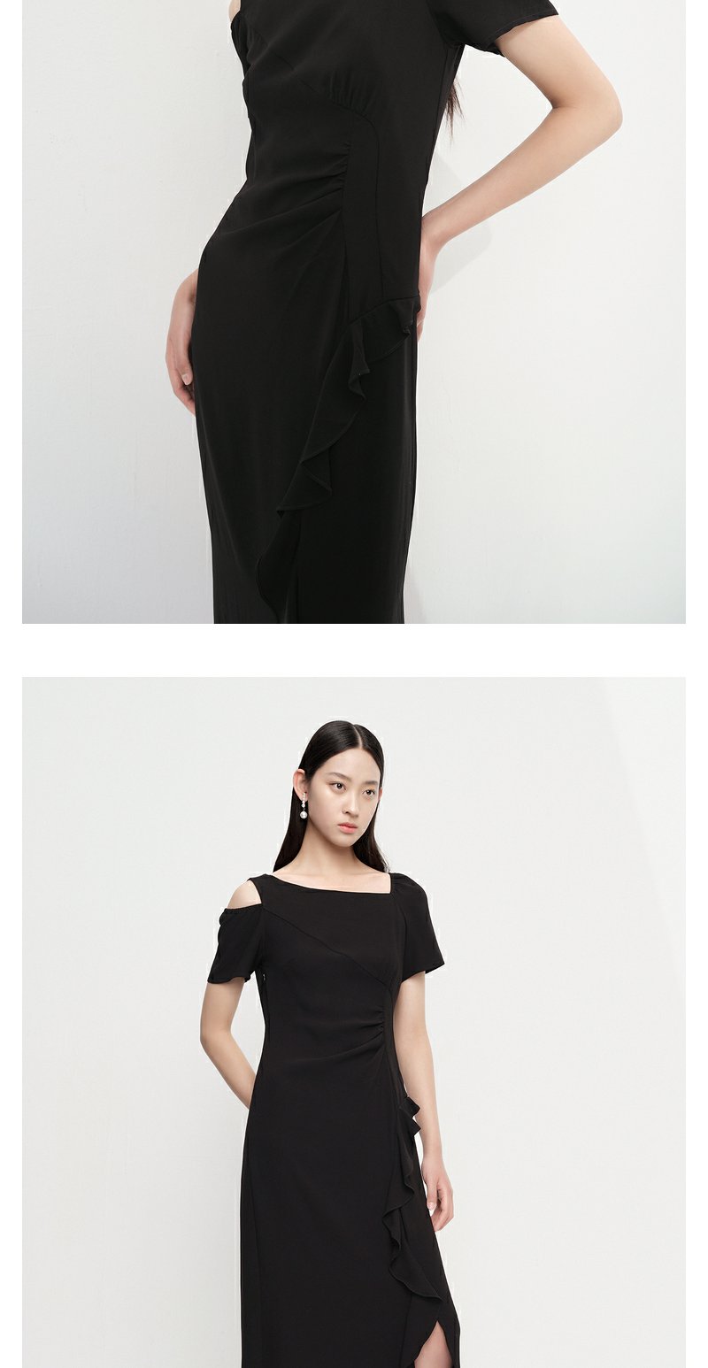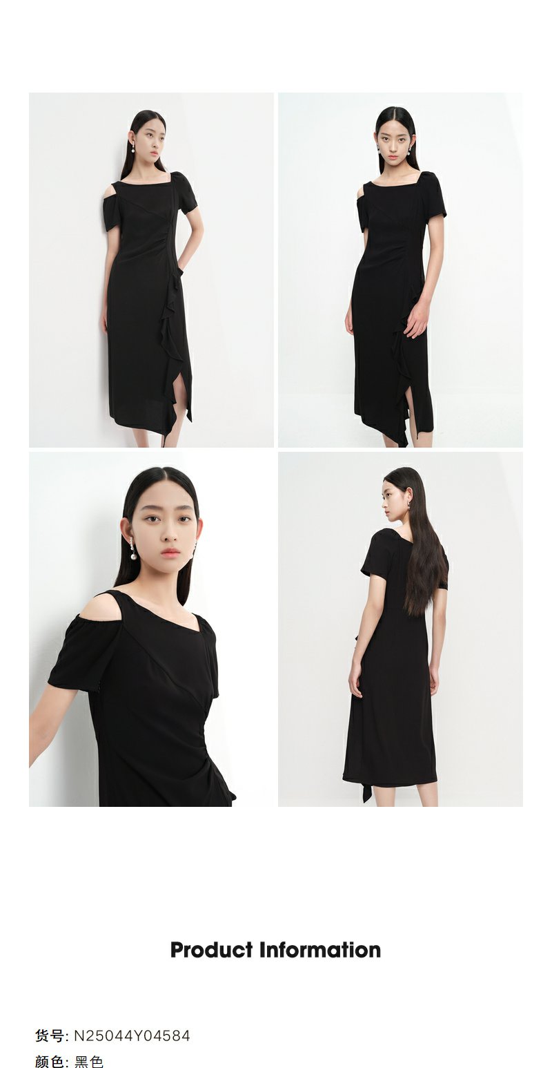 NEELLY纳俪商场同款夏季新款时尚修身连衣裙女百搭收腰开衩长裙N25044Y04584