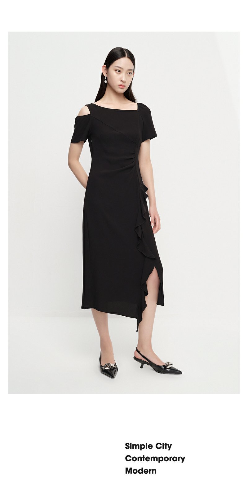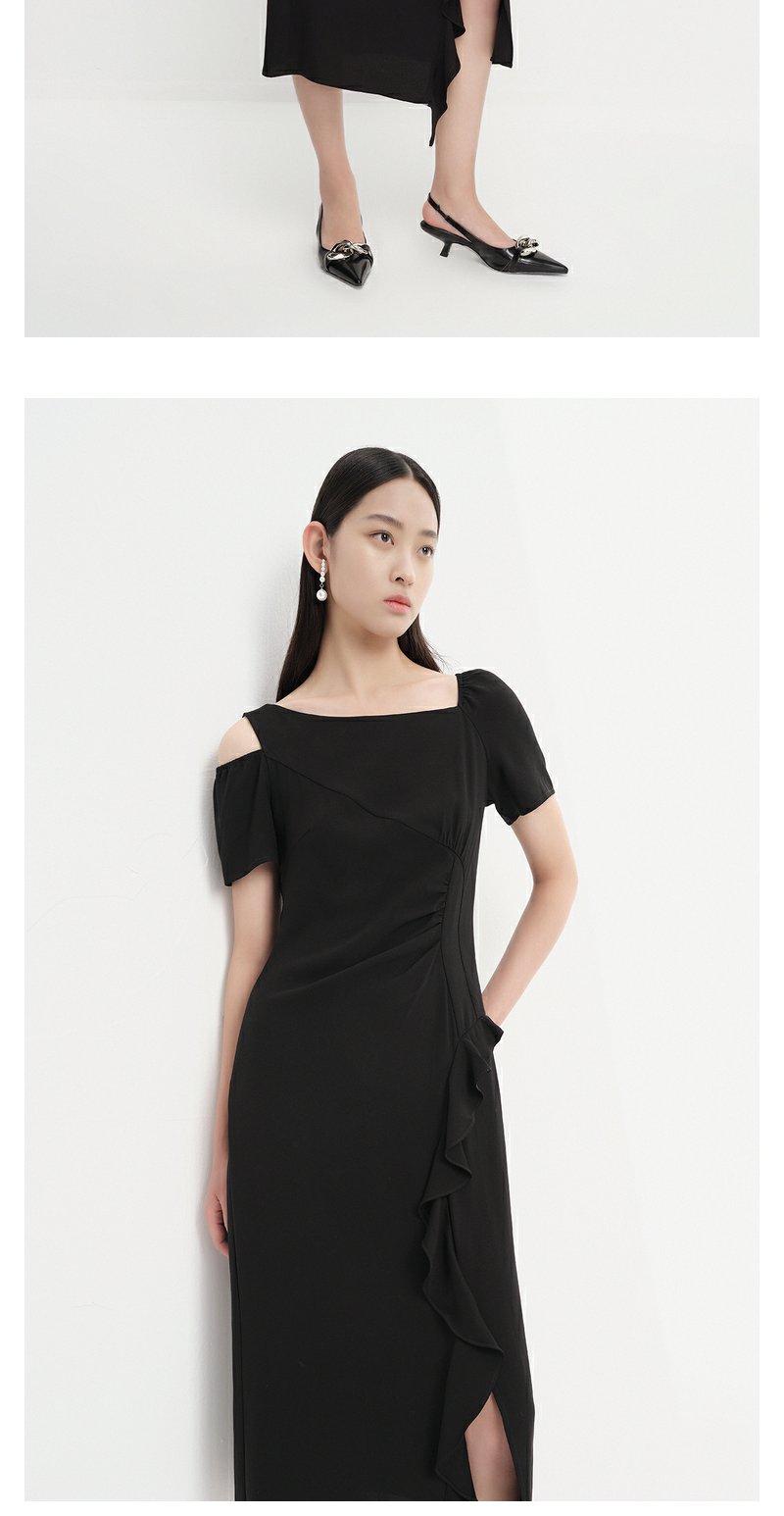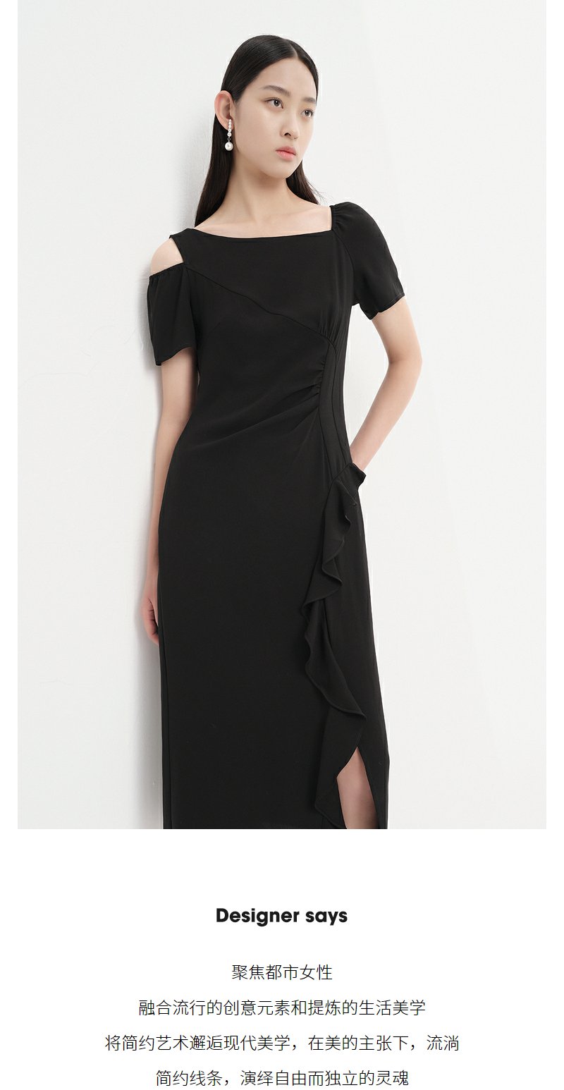 NEELLY纳俪商场同款夏季新款时尚修身连衣裙女百搭收腰开衩长裙N25044Y04584