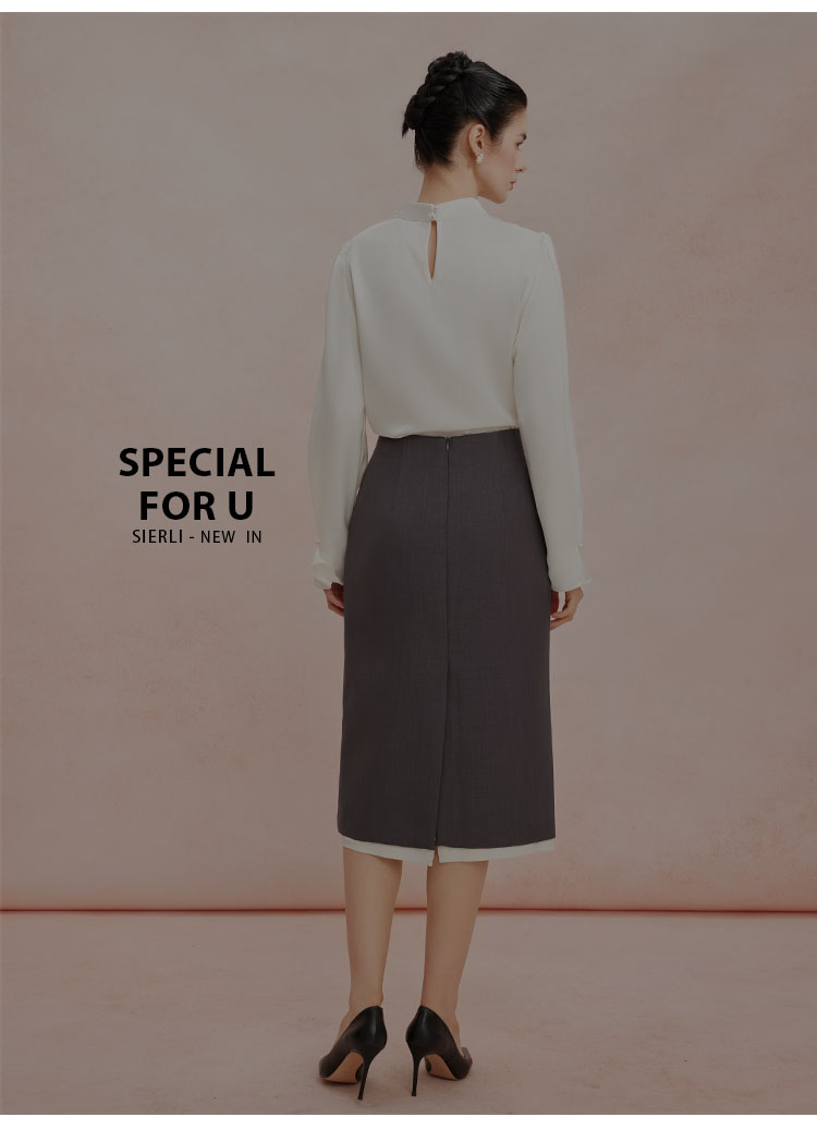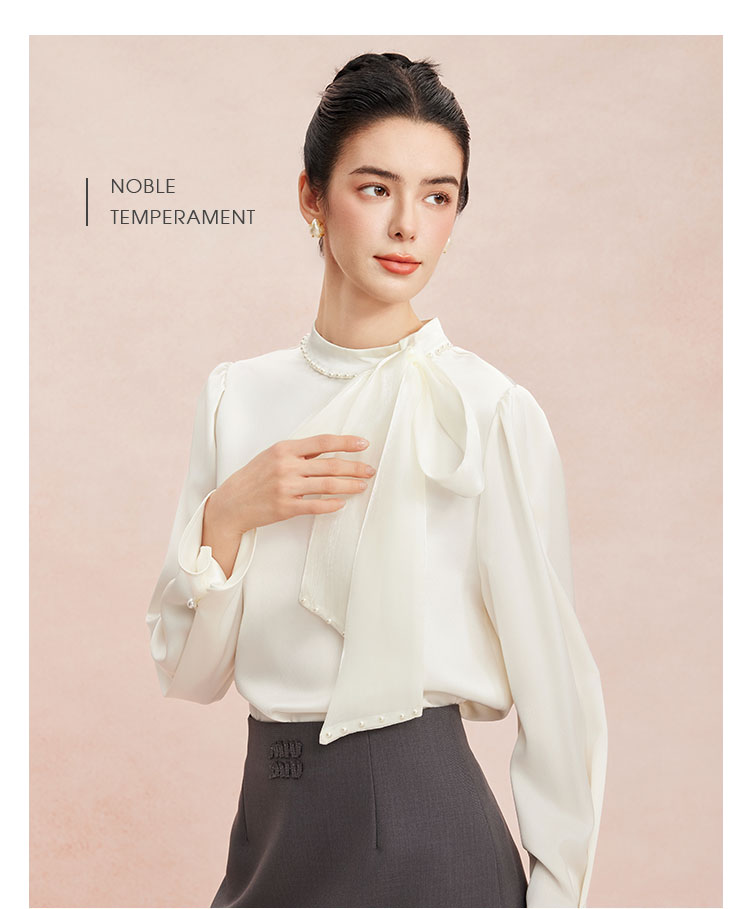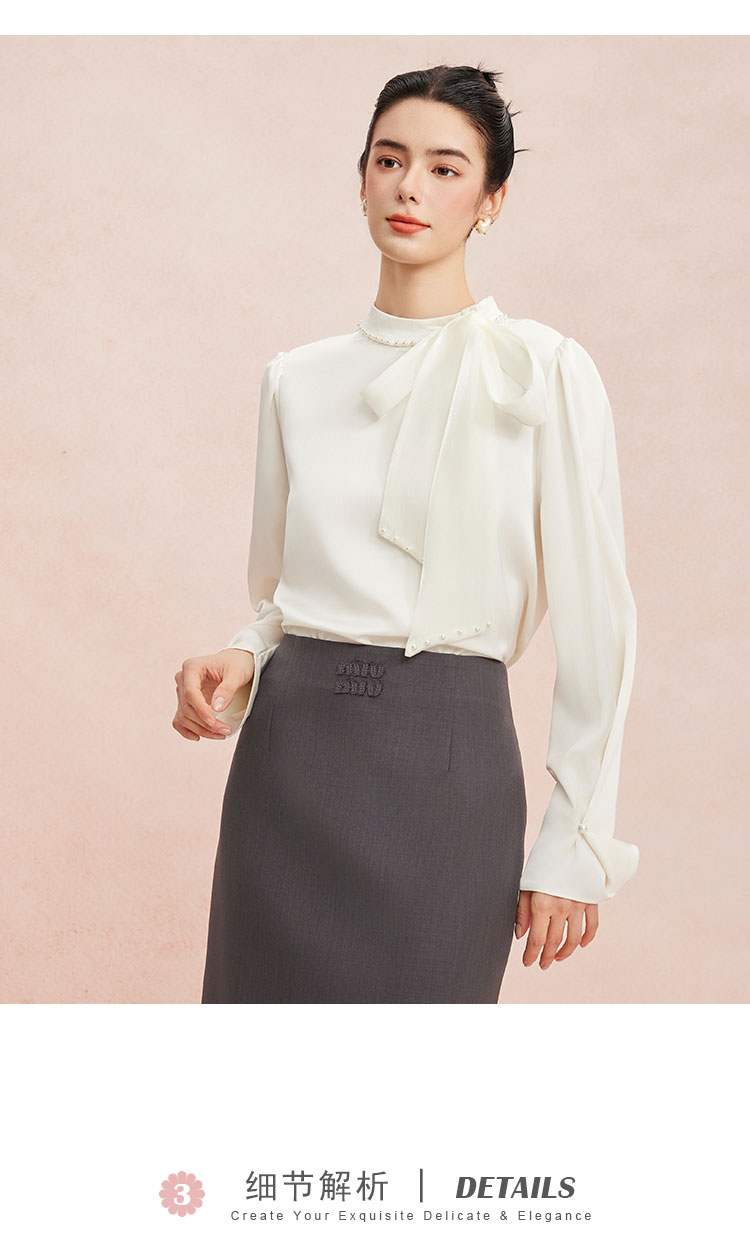 RE253斯尔丽2026春季新款光泽感高级感飘带长袖职业通勤优雅纯色衬衫