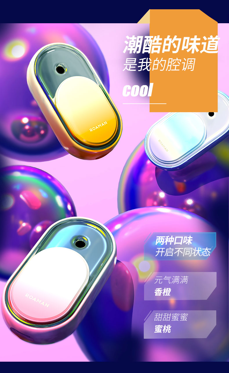 ROAMAN罗曼啵啵蒸汽口喷KP02,口腔清新剂喷雾去口臭除口气便携持jiu型电子口喷