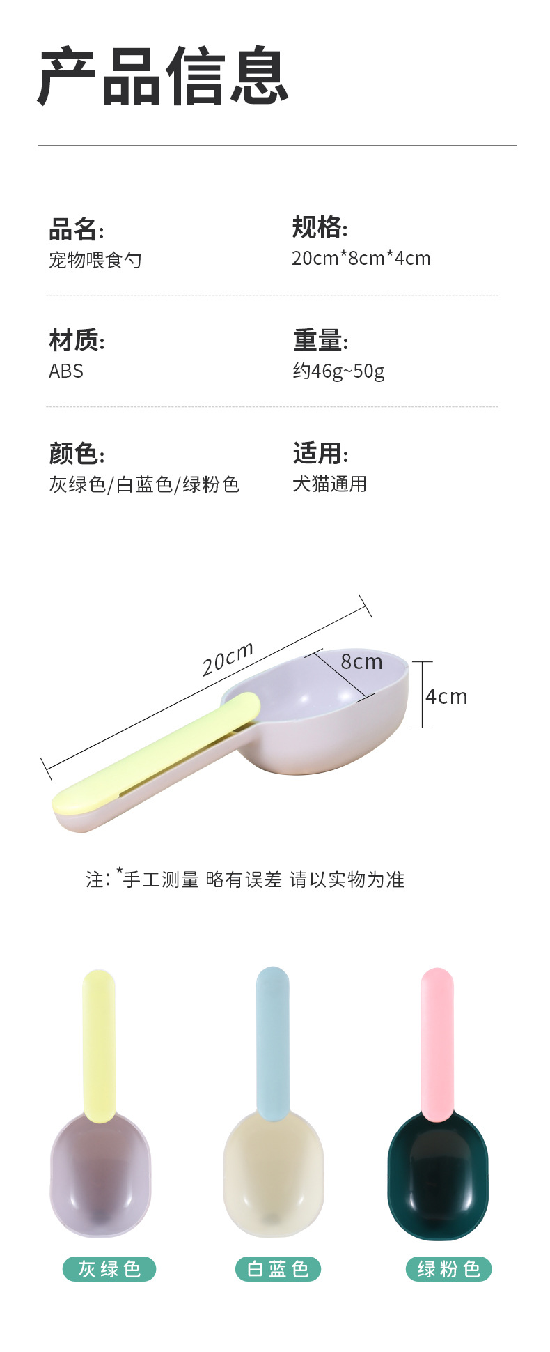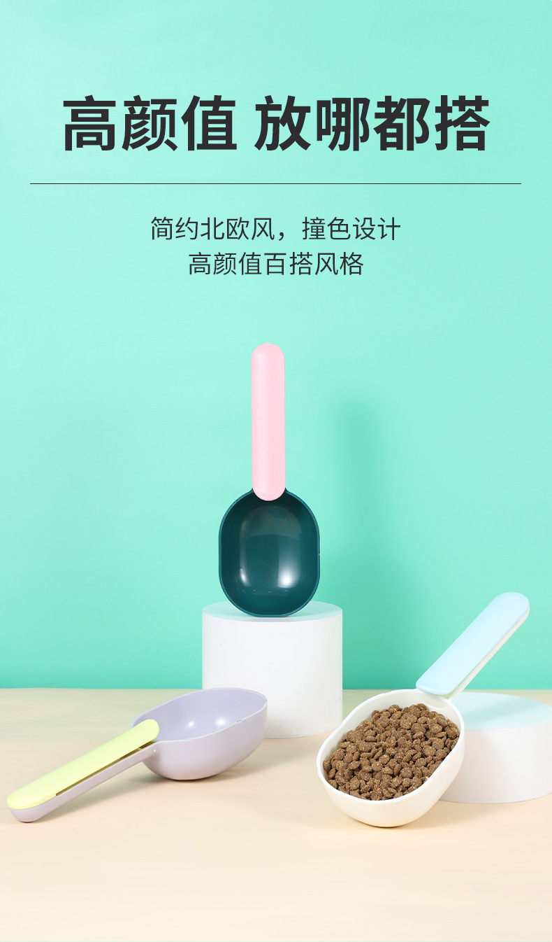 双拼色宠物粮食勺铲 带背夹 犬猫通用