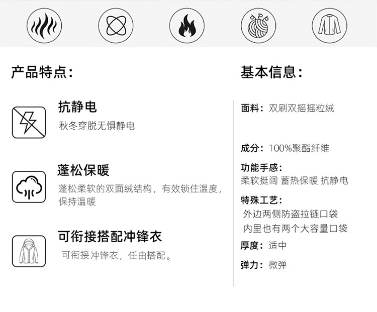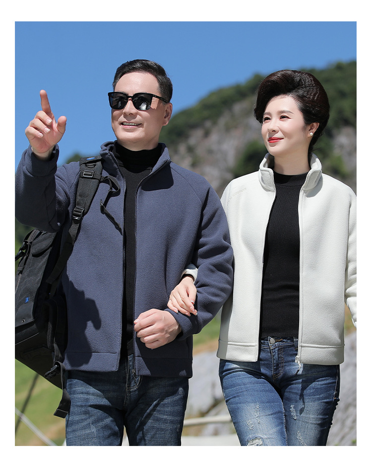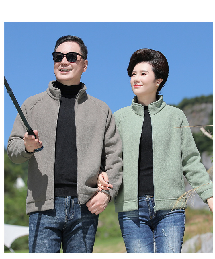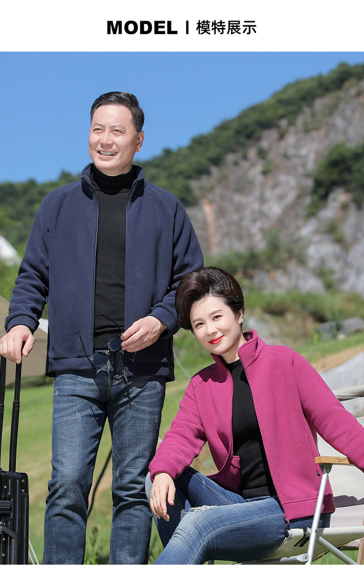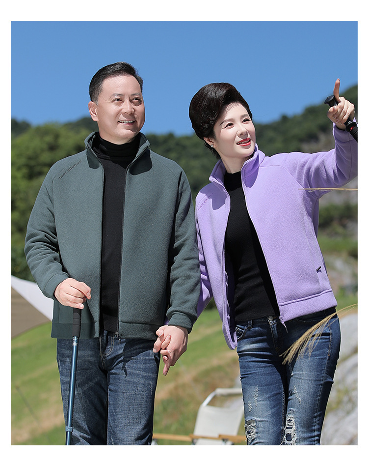 【中老年摇粒绒外套】秋冬加厚保暖抓绒衣男女 爸爸装卫衣立领开衫夹克