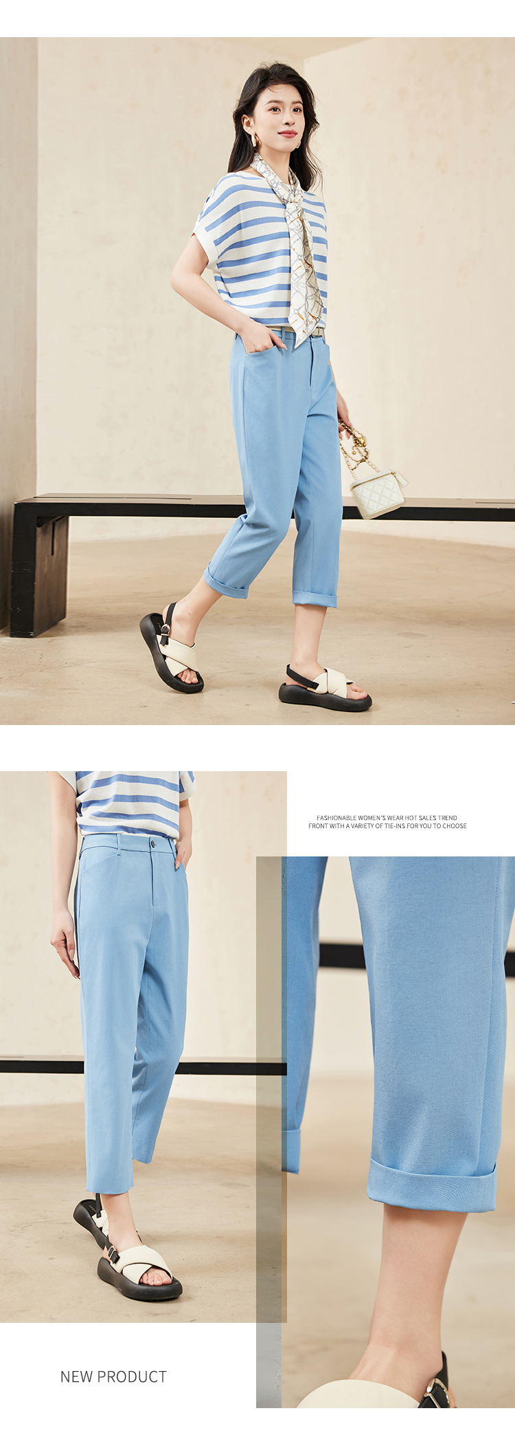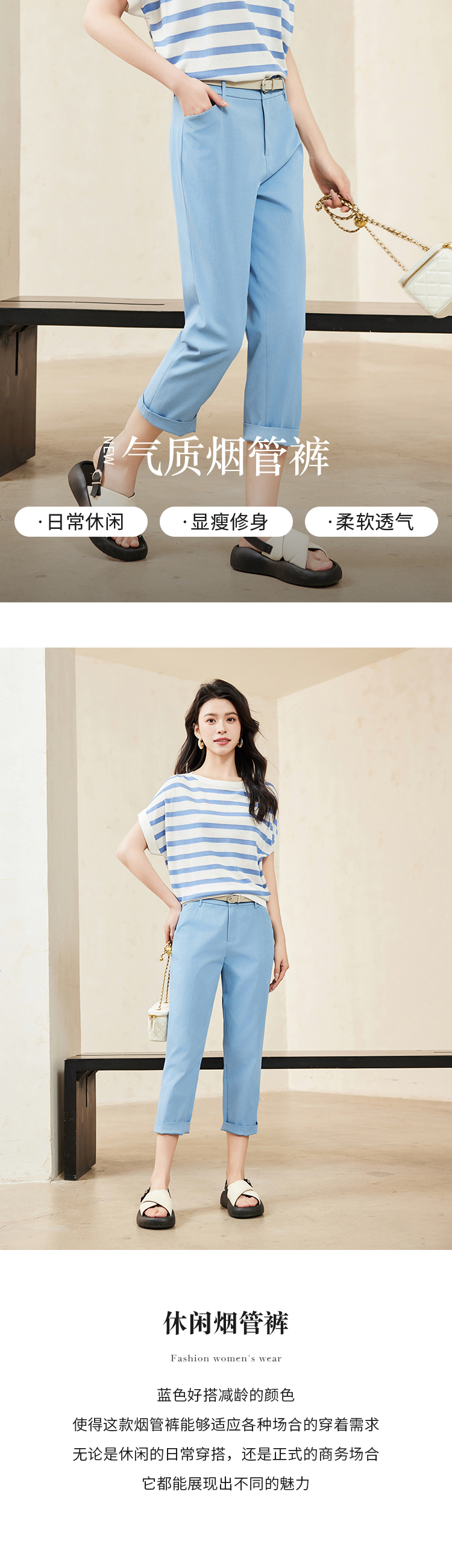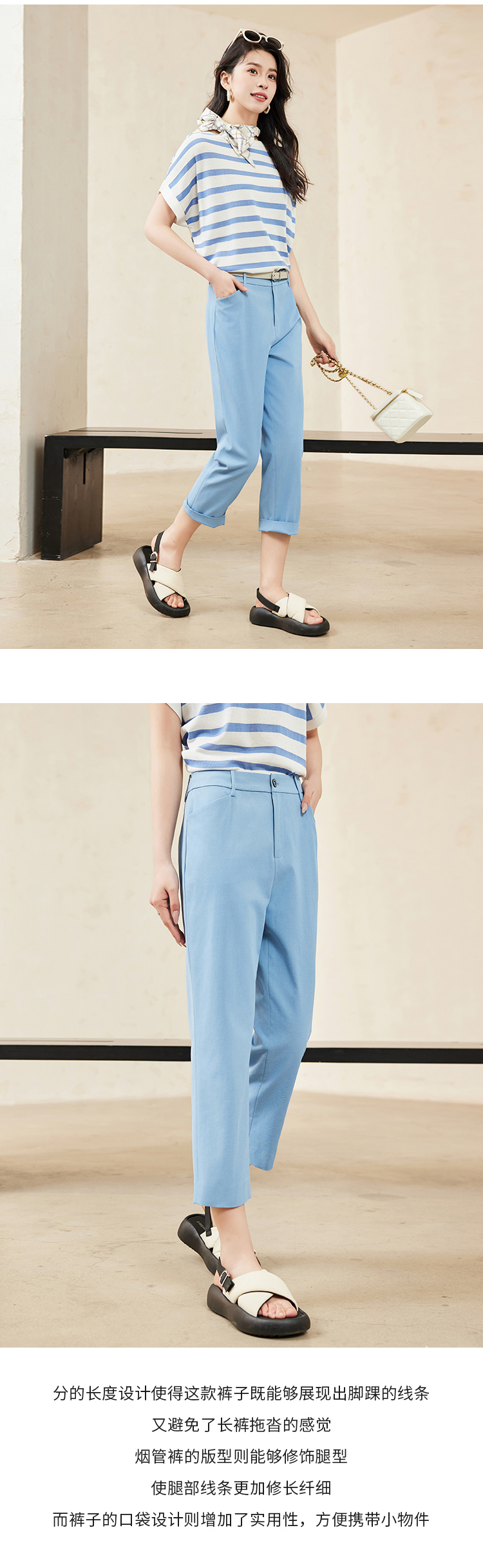 【商场同款】CNT4492 “ 棉感清凉裤 ” 清爽的海岸蓝夏意满满 九分长度的烟管裤修饰腿型舒爽利落 面料干爽,挺括有型,透气性好
