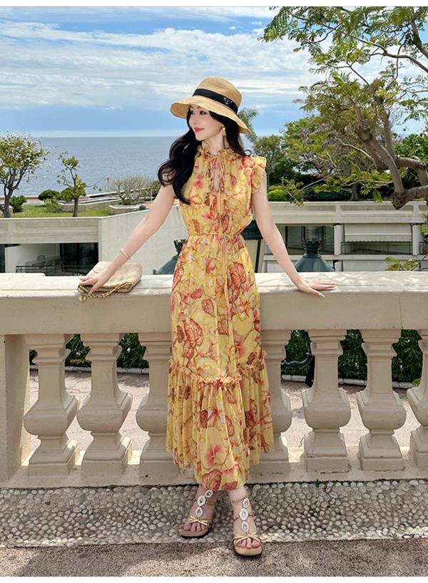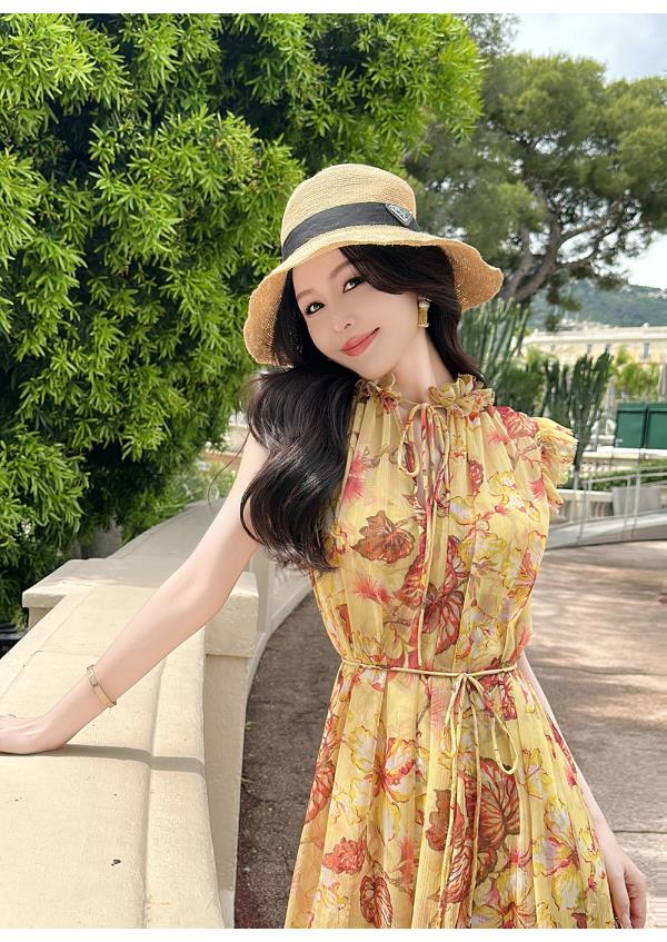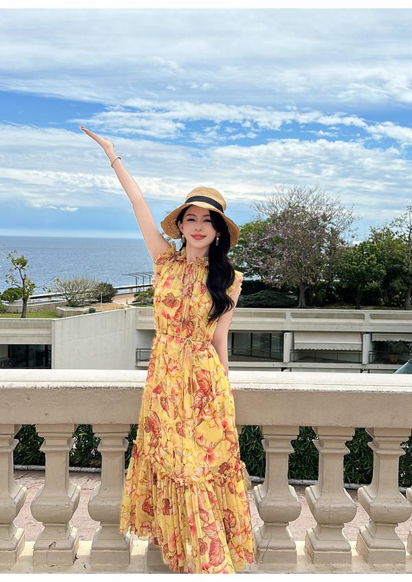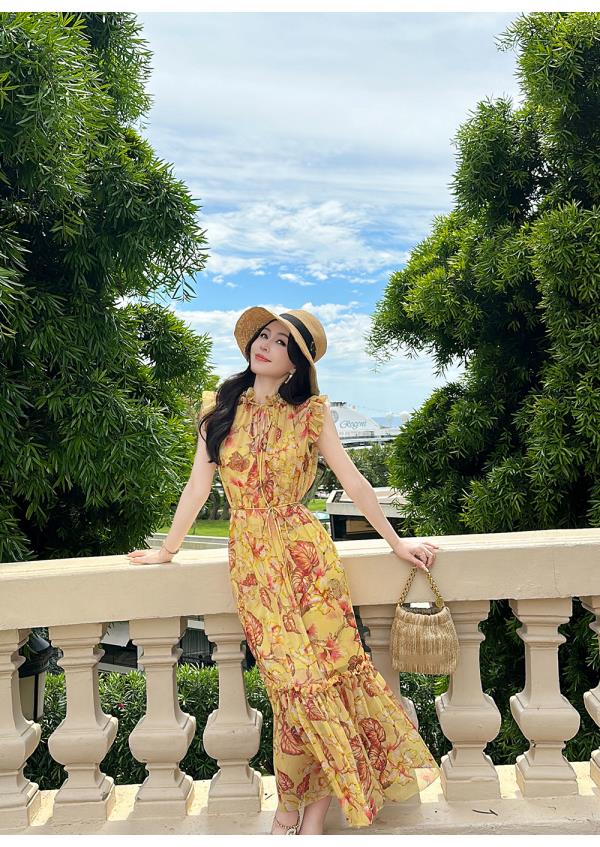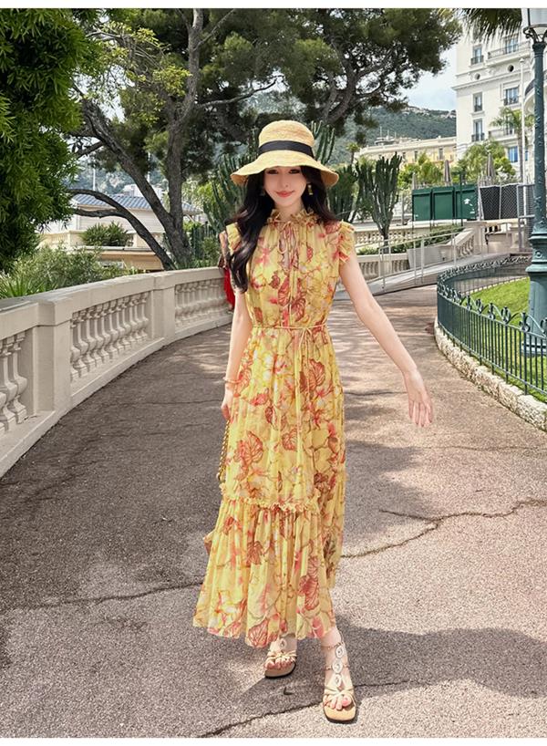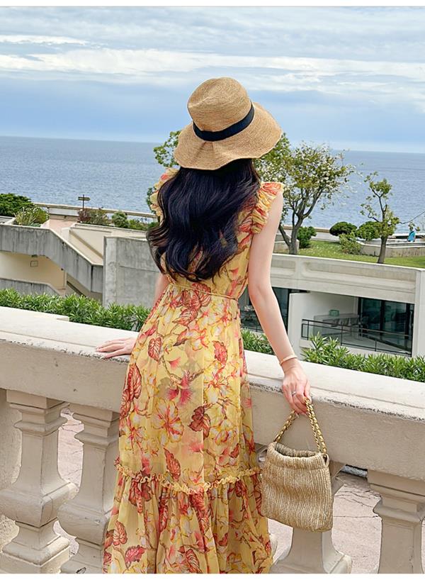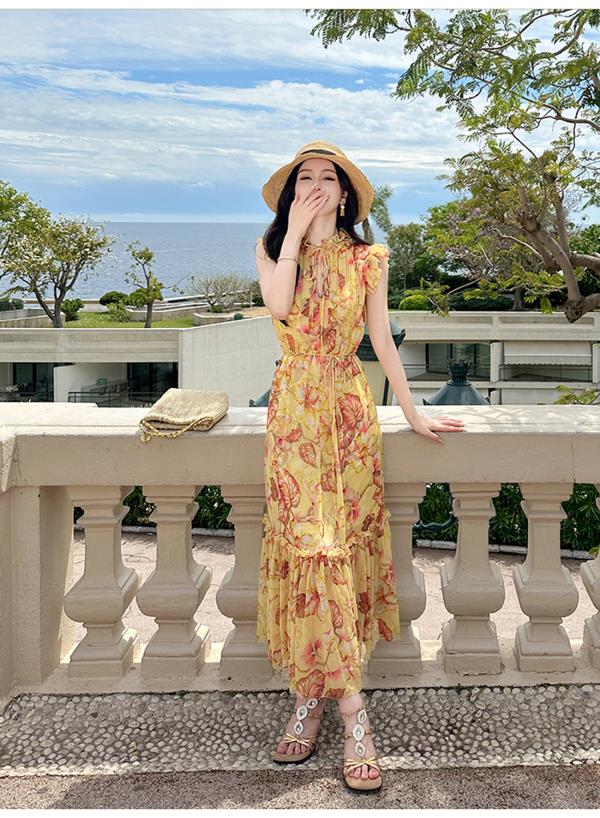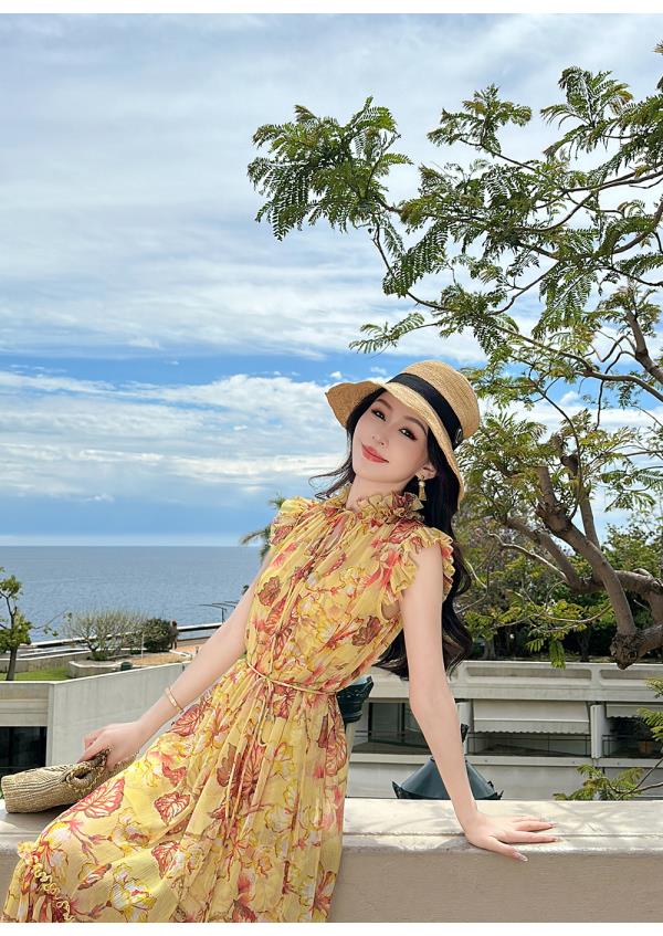 BeQueenStory【敦煌绝恋】轻盈透气夏日荷叶V领小飘袖宽松连衣裙