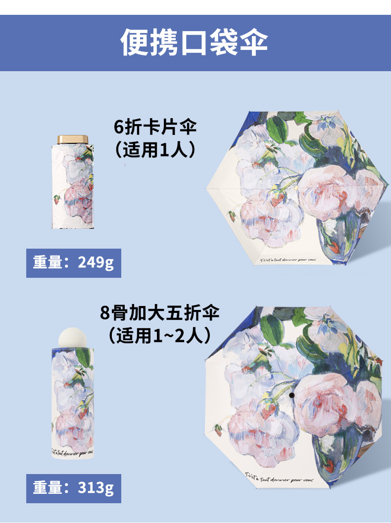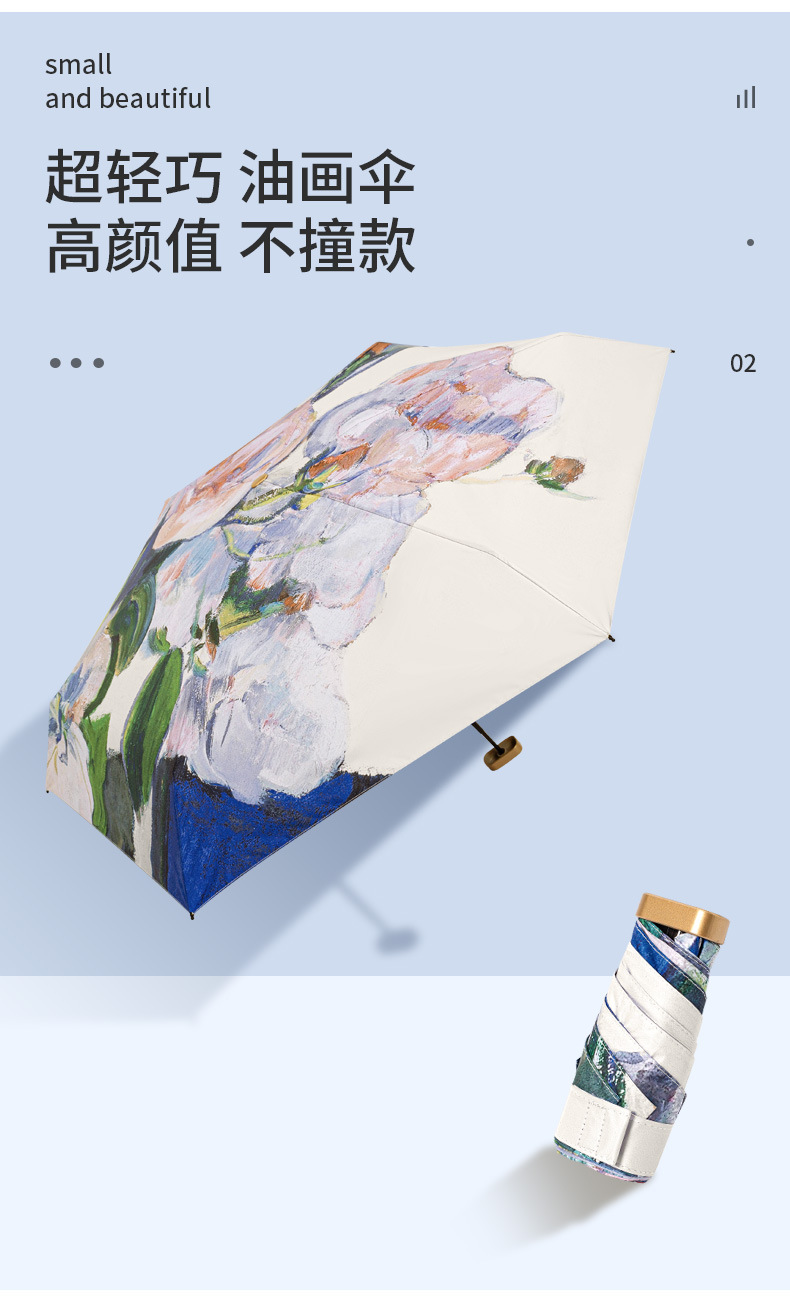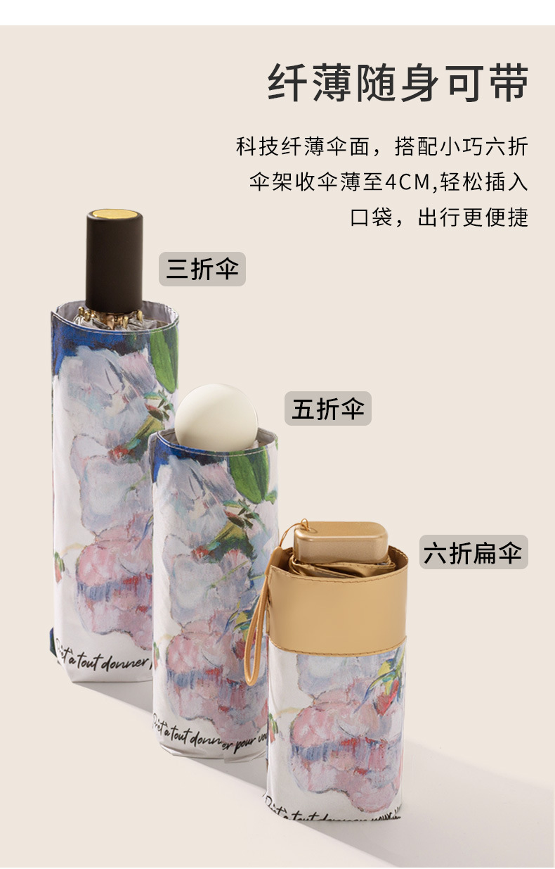 【至薄至轻 掌心之物 】六折伞超轻迷你油画伞 钛金遮阳防晒 口袋防紫外线晴雨伞 小巧便携折叠伞