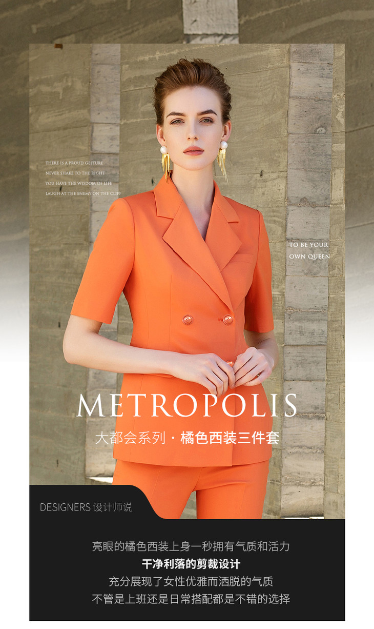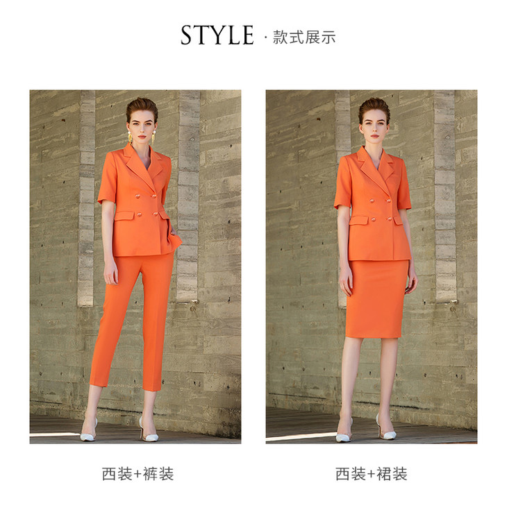 IWY/橘色半裙西装长裤套装三件套202028CP1+28S1