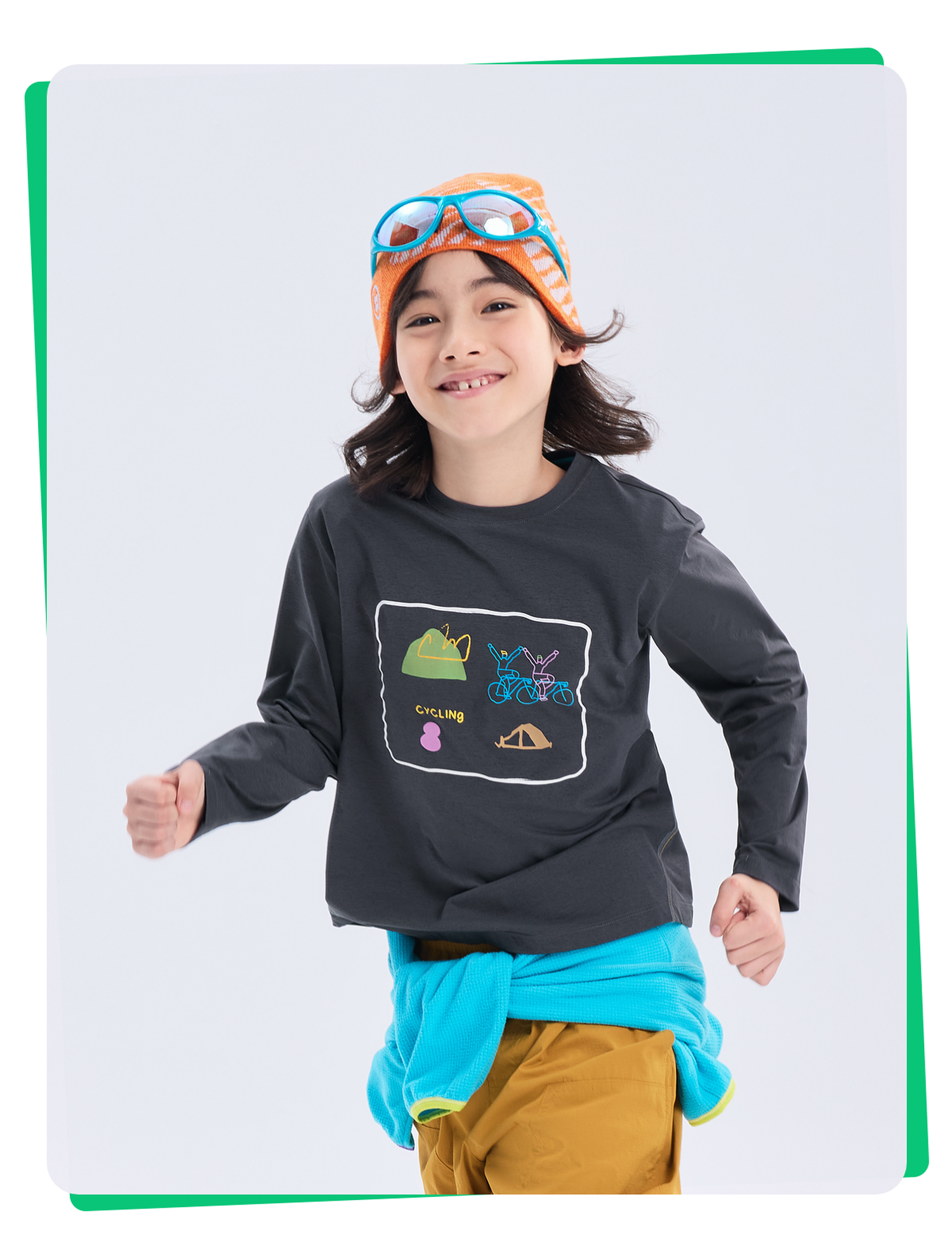 【代发】绿标手绘涂鸦长袖T儿童秋季长袖上衣纯色款SUNNYWHITEGreen