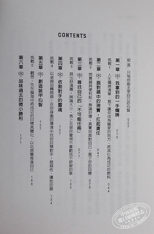 本書每章章末都有個「挑戰」,是哥金斯運用的心法,邀請讀者一起練習,進而改變自己的限制性信念、提升生活動力。此外,本書也被Yahoo財經選為「2019年最佳商業書籍」,因為要在商業╱事業上成功,需要策略性思考、自我激勵,以及鼓舞團隊的能力,而這些,在這本書裡都能找到。
