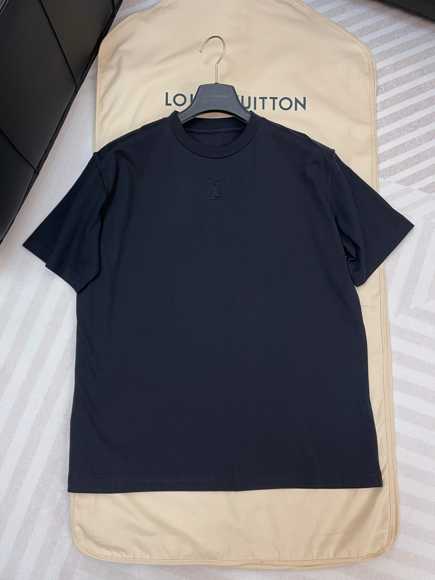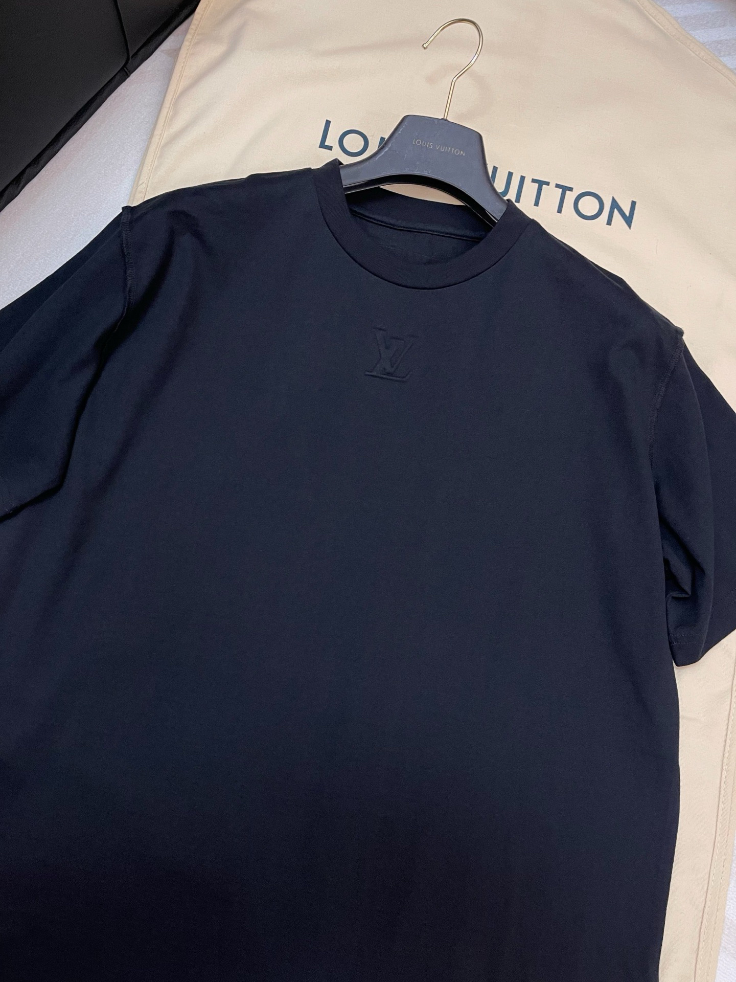L-T (男装)25ss黑色压纹标识T恤