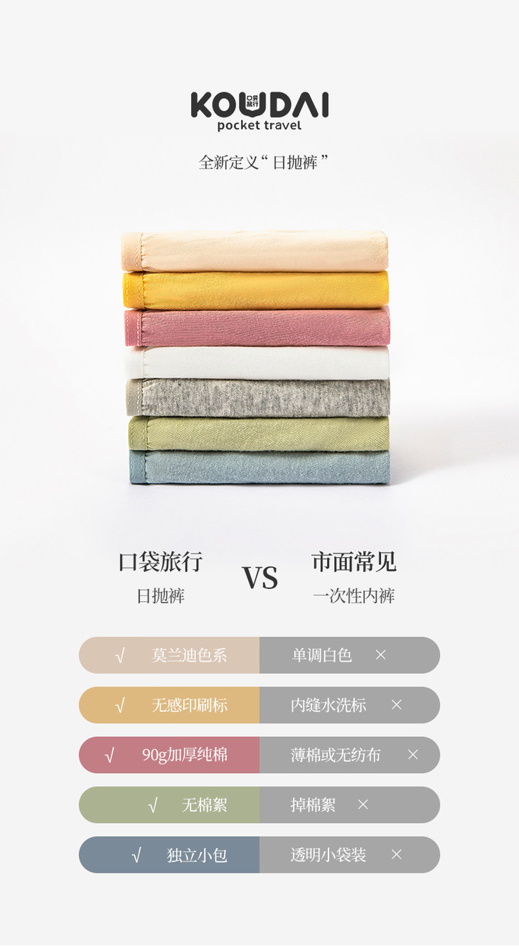 口袋旅行日抛一次性女士内裤莫兰迪色7条装女纯棉免洗旅游用品
