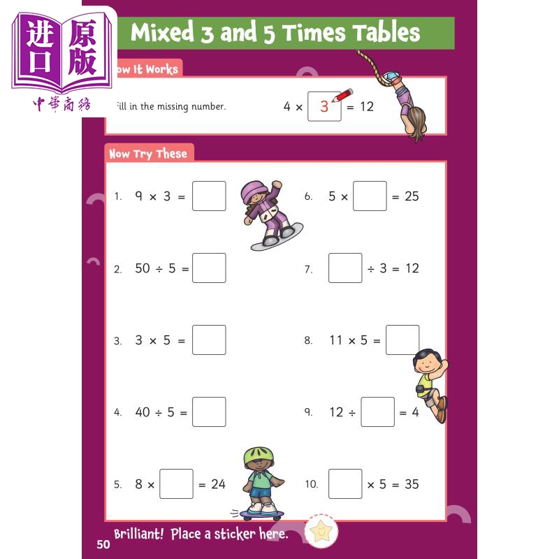 这本色彩鲜艳的 CGP 活动书充满了适合 5-7 岁儿童的乘法表练习,以及100 多个精美的贴纸。它涵盖乘法表回忆、倍数计数、乘法和除法。它与课程仔细匹配,答案包含在后面。