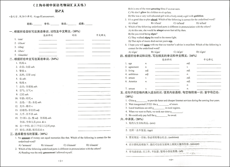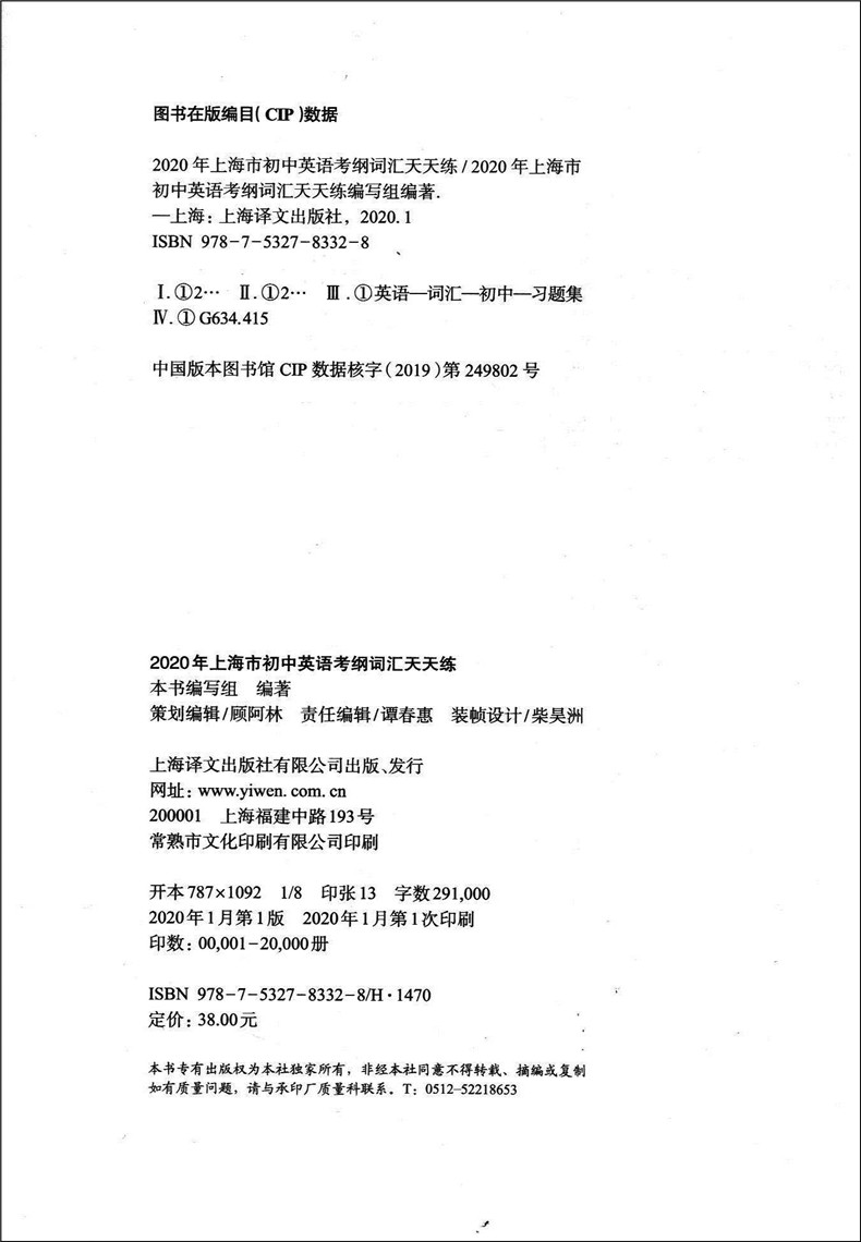 现货2021年上海市初中英语考纲词汇天天练 上海译文出版社 上海市初中英语考纲词汇用法手册配套词汇 中考英语词汇默写练习册