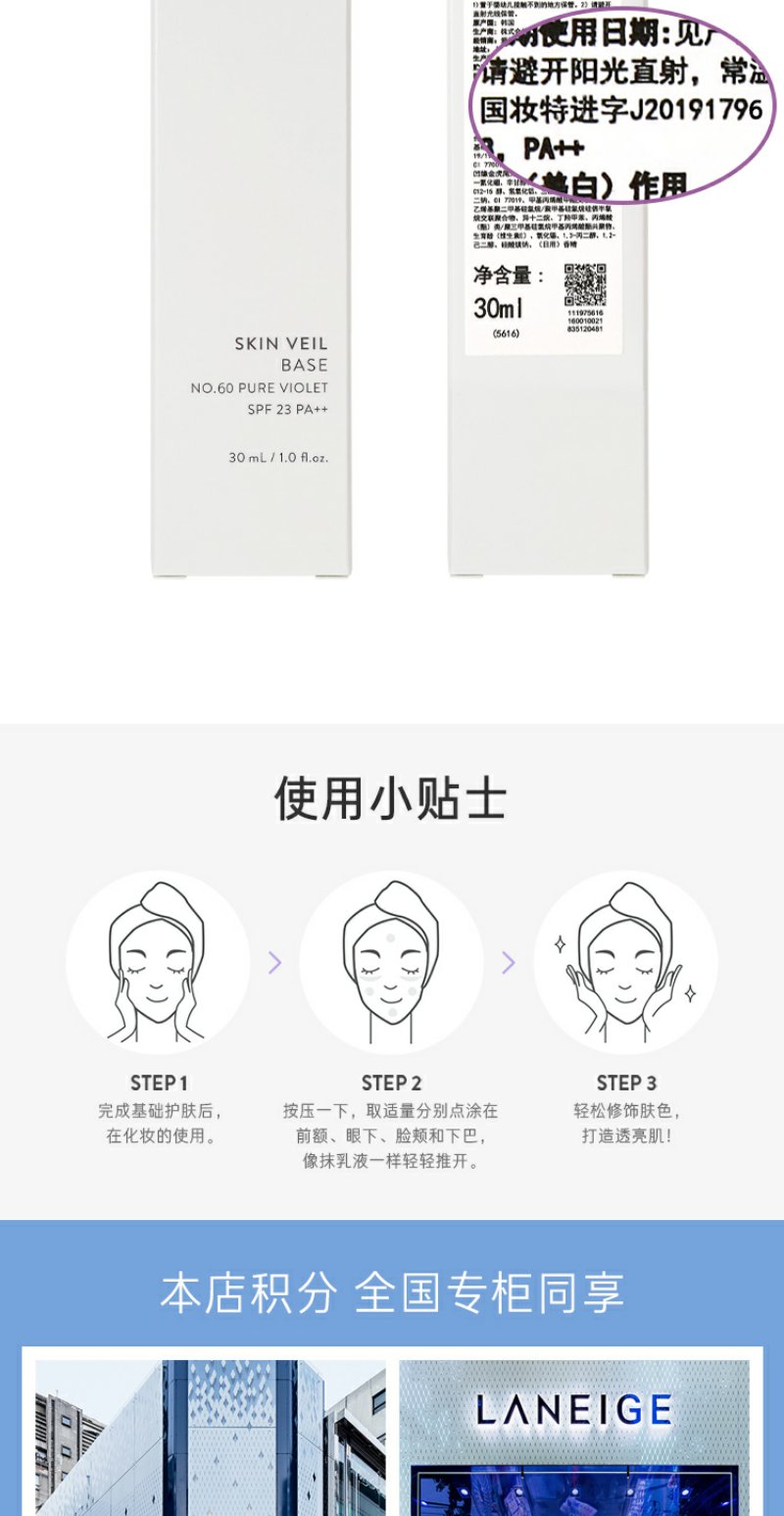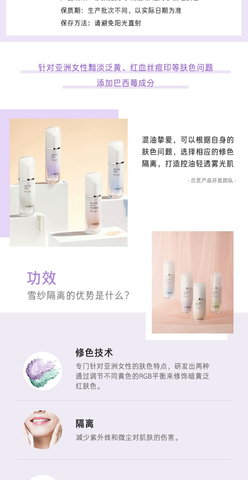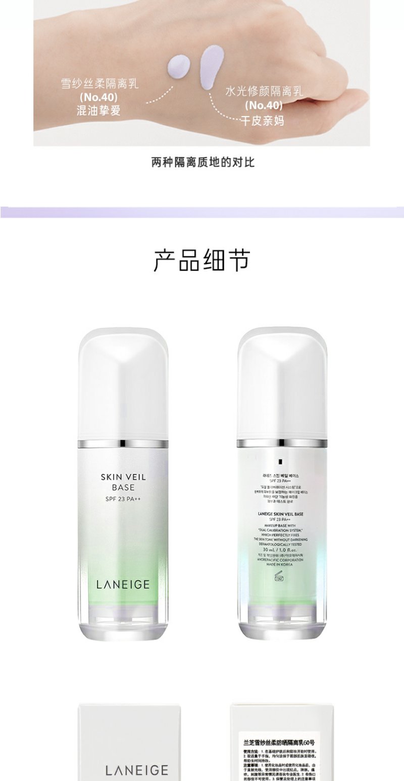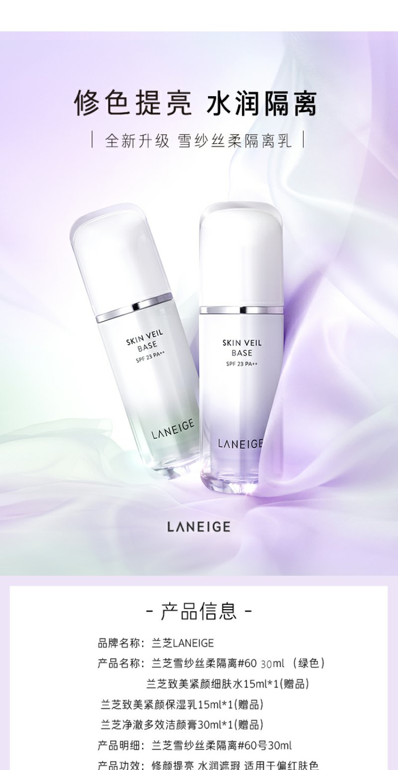 兰芝雪纱丝柔防晒隔离霜60号SPF22/PP++30ml(绿色)