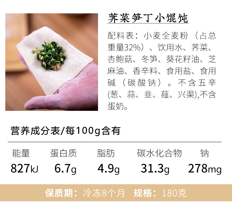 限时买赠【一穗堂荠菜笋丁/松茸菌菇小馄饨】 15克*12个 180克/满96元顺风冷链包邮/有机面粉/手工包制/皮薄馅足/净素无五辛