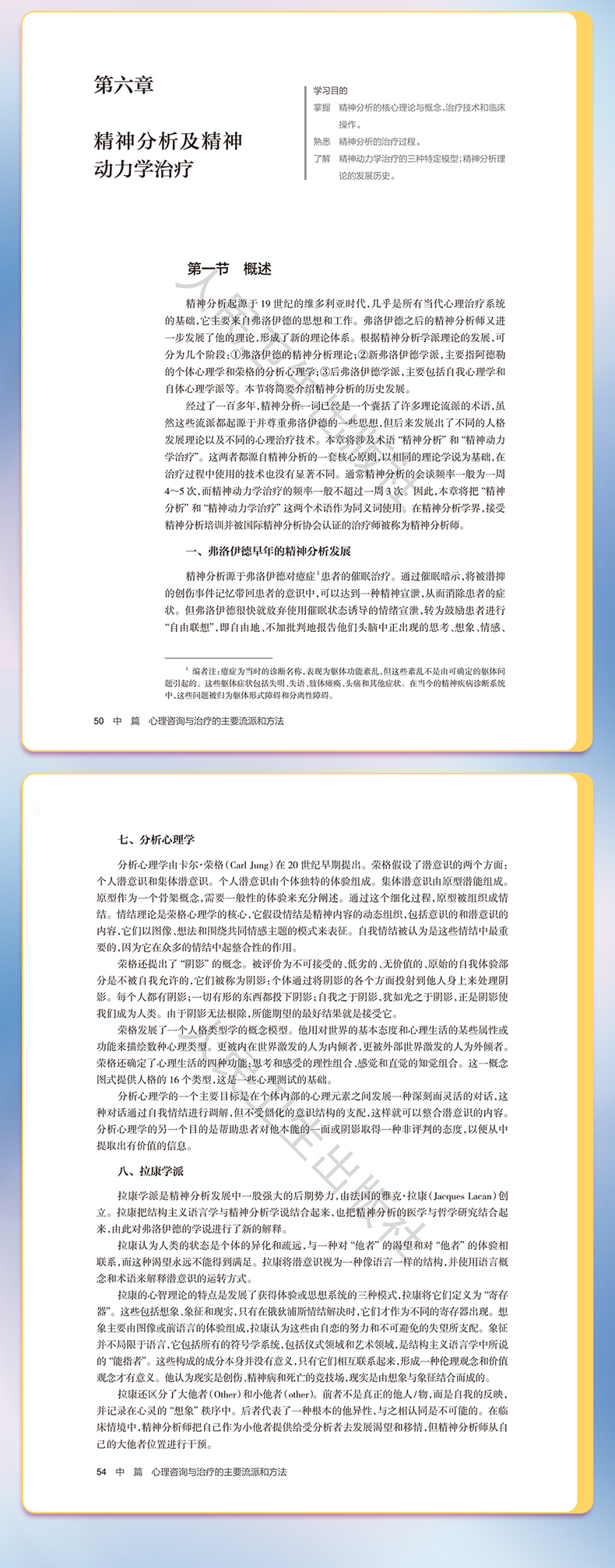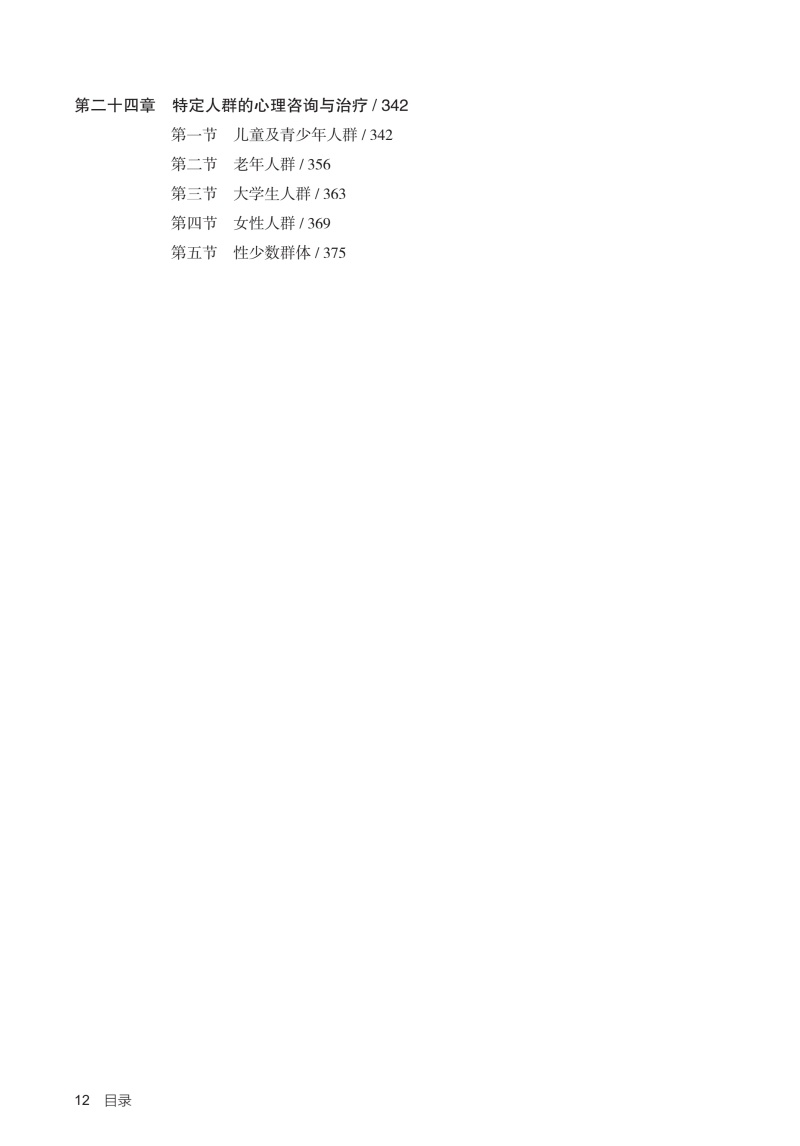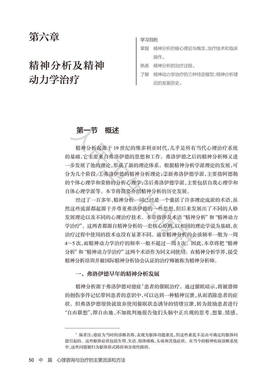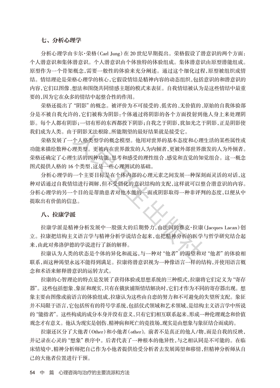 "分为三个部分,**部分是心理咨询与治疗理论篇,主要包括:心理咨询与治疗概述、精神分析治疗、行为治疗、认知治疗、人本主义治疗、家庭治疗、团体治疗等。**部分是心理咨询与心理治疗临床实践篇,将针对精神分裂症、抑郁症、焦虑症、强迫症、创伤及应激障碍、进食障碍、成瘾障碍等常见精神心理疾病的心理治疗技术和过程进行介绍,配合临床书面案例,对关键技术将录制教学录像,以达到更好的学习效果。第三部分:特殊人群的心理咨询与心理治疗,包括儿童、青少年、老年、女性等。 本教材的读者主要来之三个方面:一、精神科住培医师、精神科专培医师;二、心理学及相关专业学术型、专业型硕博研究生;三、接受规范化培训的广大社会心理咨询师。"