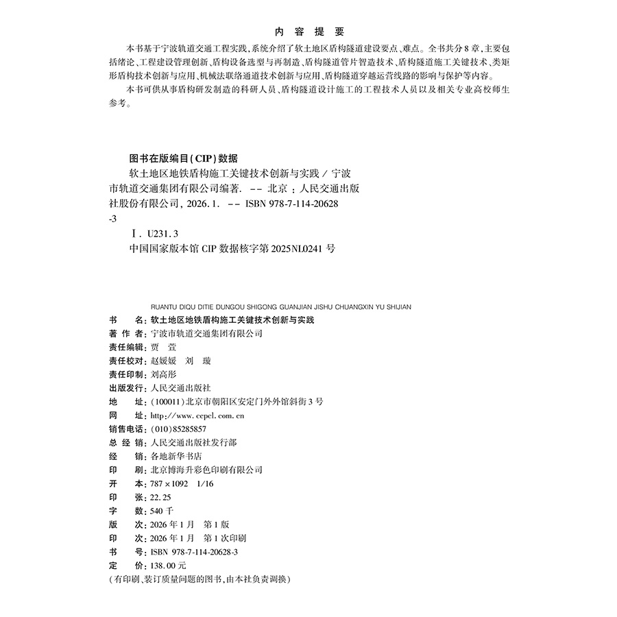 书名:软土地区地铁盾构施工关键技术创新与实践