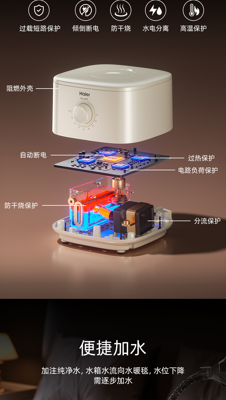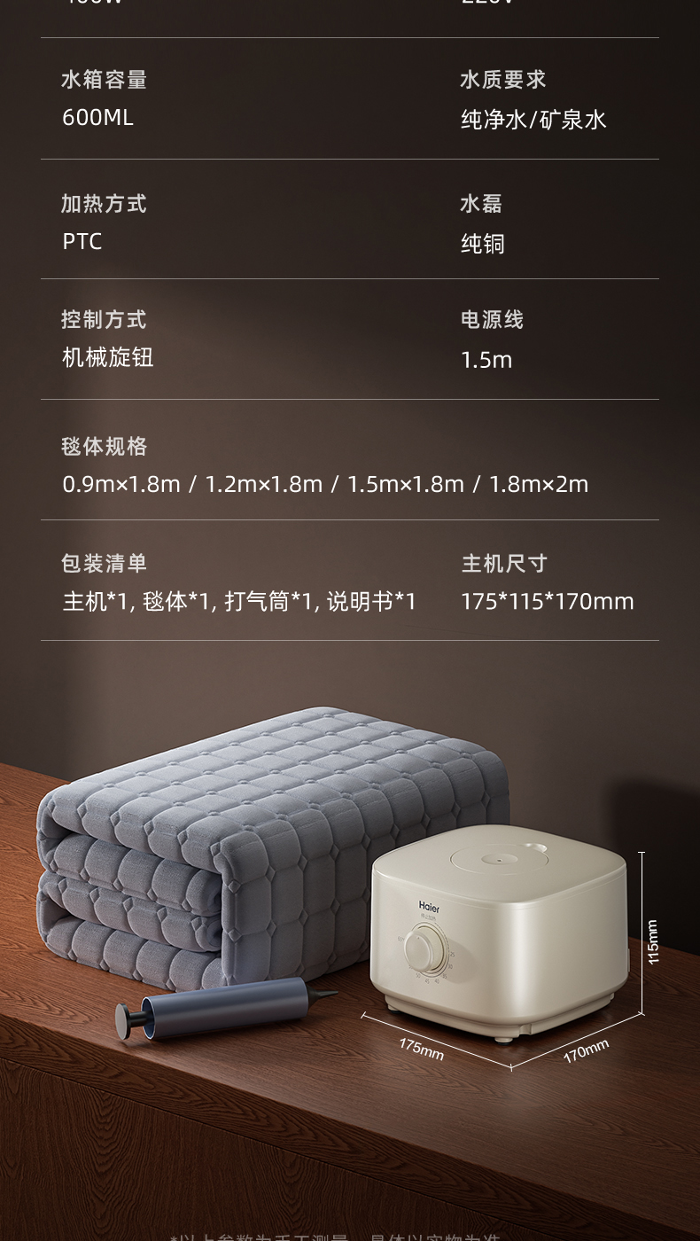 海尔(Haier) 水暖毯双人智能水暖电热毯2025年新款家用调温电热毯电褥子母婴可用除湿除螨水暖电热毯水循环 【1.5m×1.8m】【2m×1.8m】水暖无辐射*除螨率100%