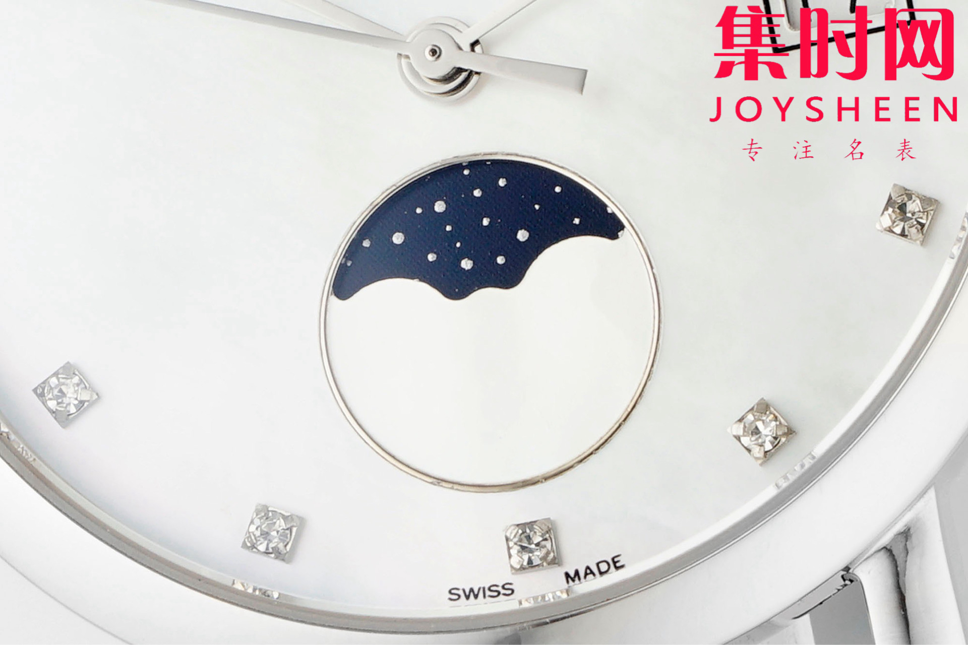 表盘包含白色珍珠母贝、哑光白漆面等样式散发着优美姿态,简约的大三针设计一举一动都是优雅风范的表达。