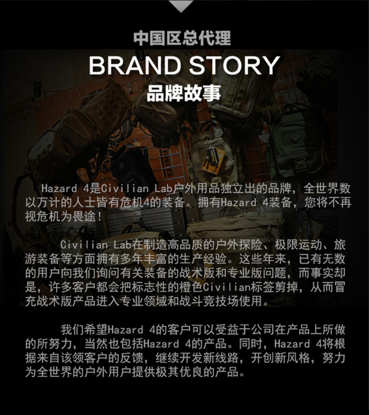 鹰爪,中国功能男装创领品牌,致力于服务中国3亿新中产阶级,着力打造全场景穿着体验创新平台,三十年产业深耕的积淀,以用户的痛点为己任,开创兼具军品与户外装备的功能动态穿着系统。