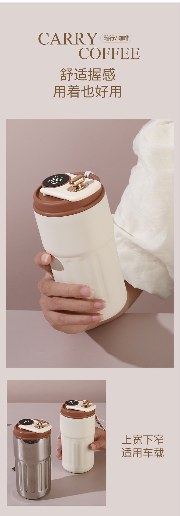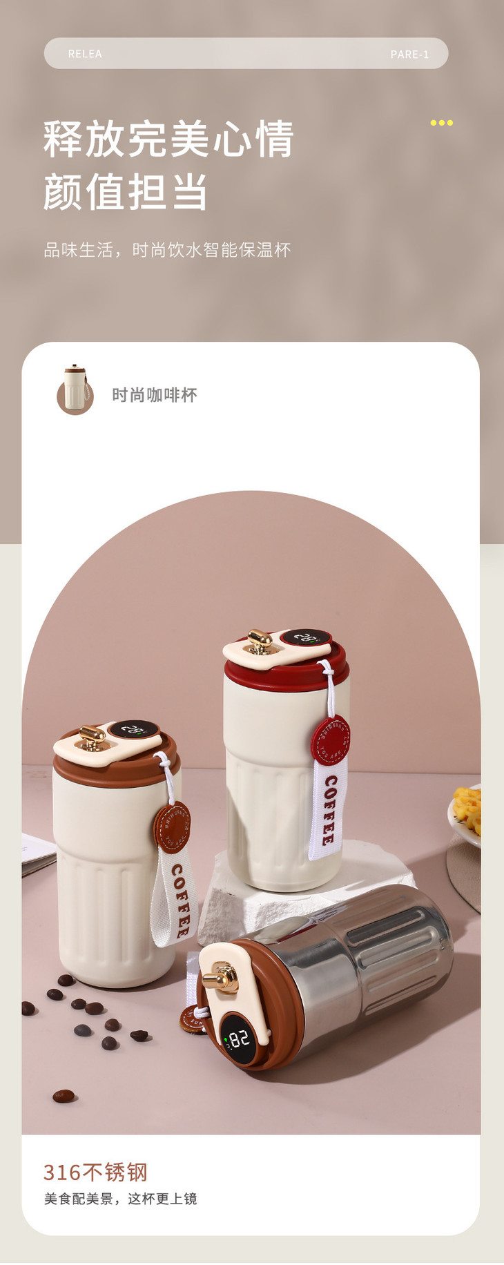 新款316不锈钢保温杯咖啡杯智能测温高颜值男女学生水杯