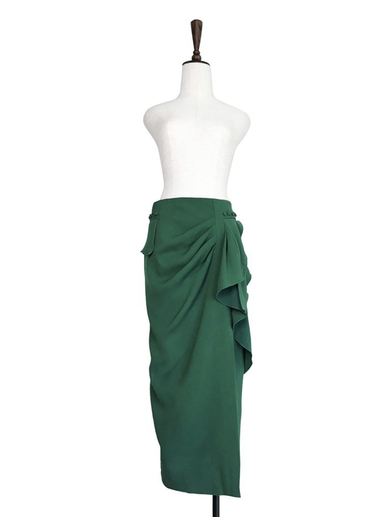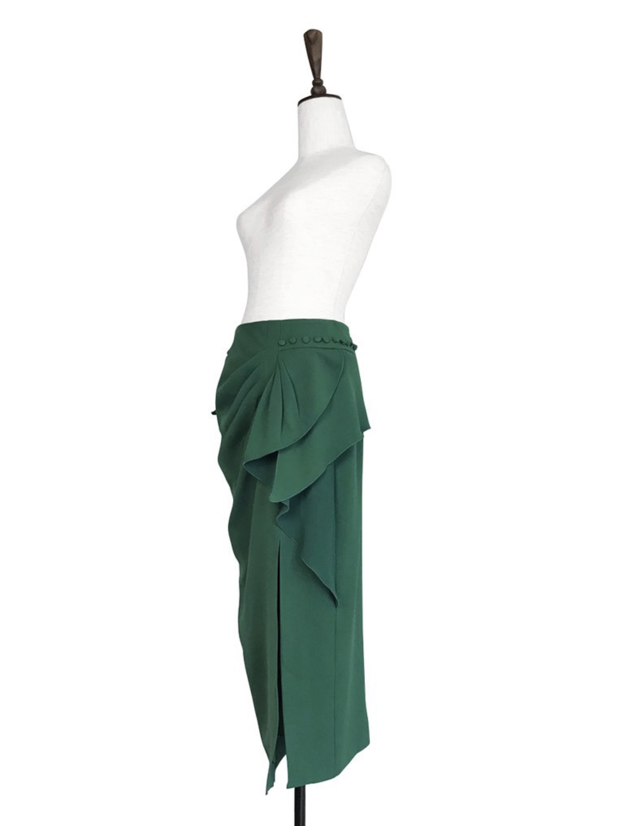 TYNVIE 花边装饰侧开衩修身长裙 - 绿色