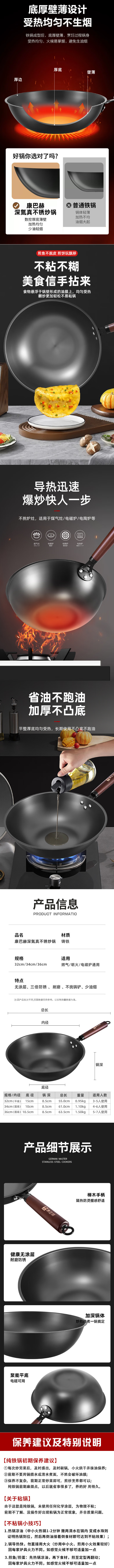 康巴赫(13579)无涂层深氮真不锈不粘铁锅无涂层圆底凹面炒锅KGZ-C32S