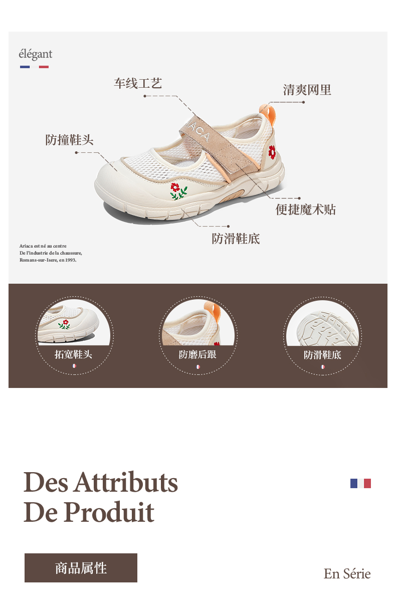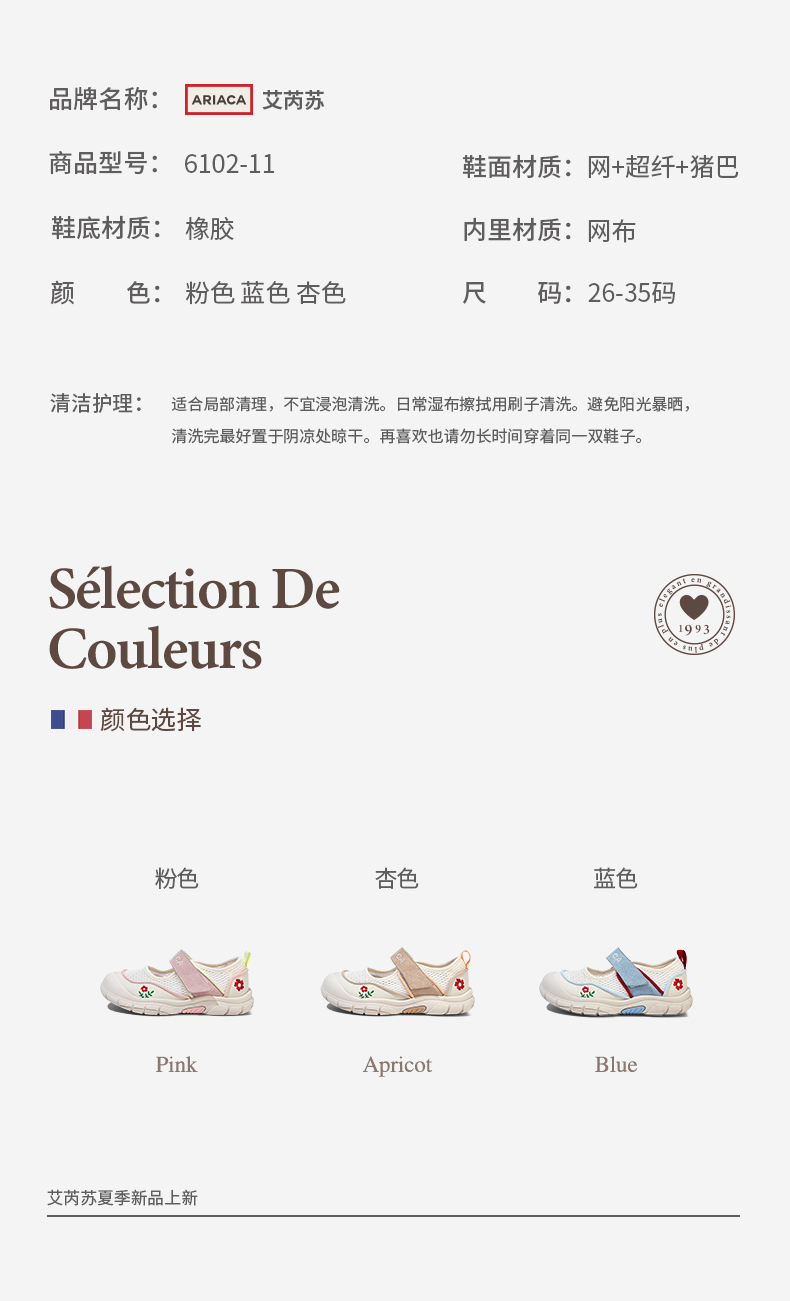 ARIACA艾芮苏女童运动鞋网面2025春季新款中童室内鞋儿童鞋子凉鞋6102-11