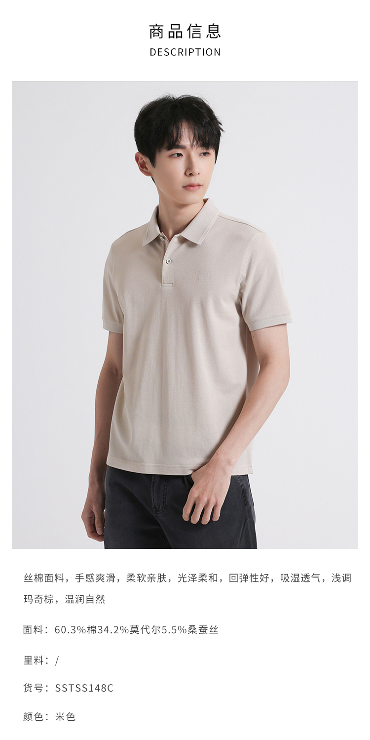 callisto米色聚酯纤维混纺短袖T恤 SSTSS148C