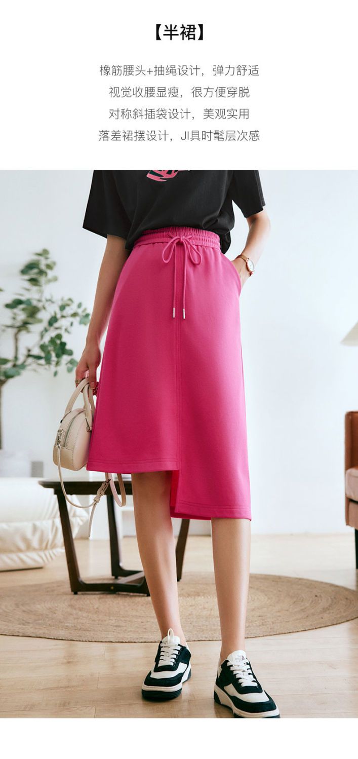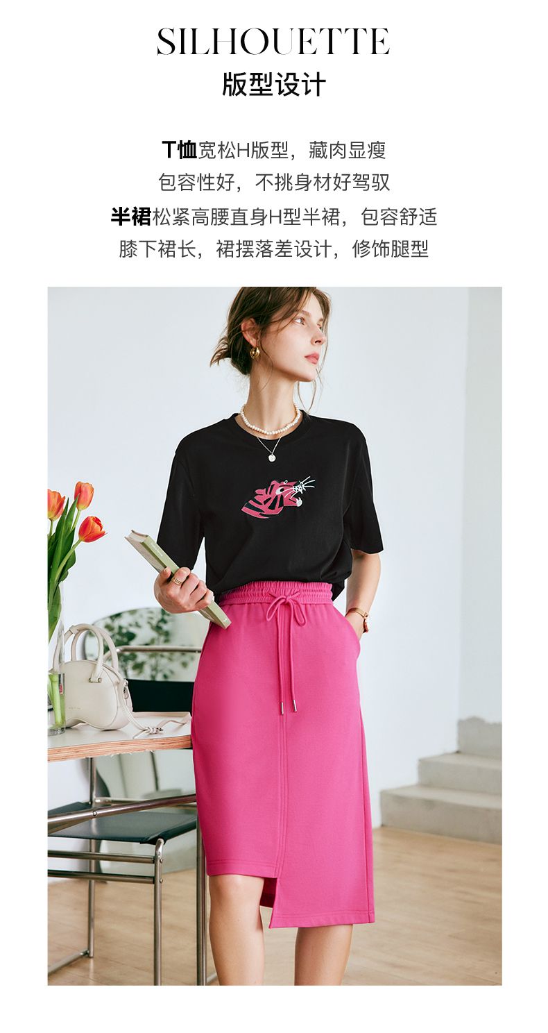 OLrain法式高级穿搭时尚套装女夏季2022新款黑色t恤显瘦裙两件套