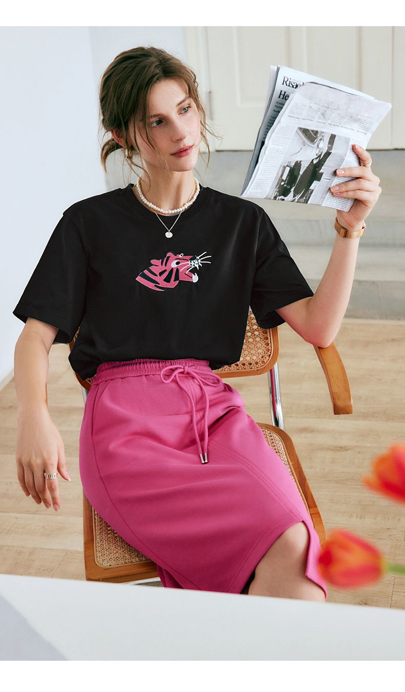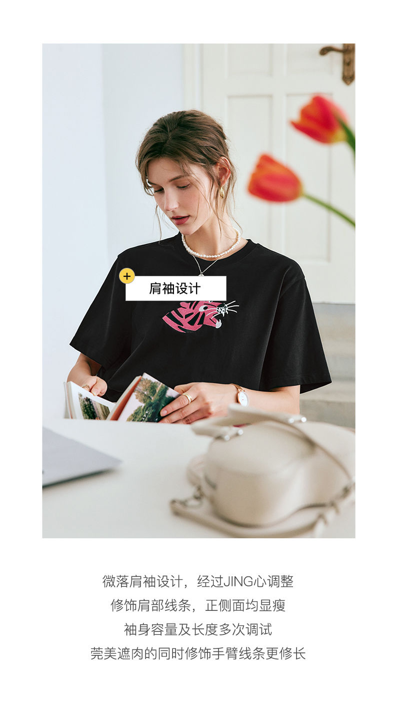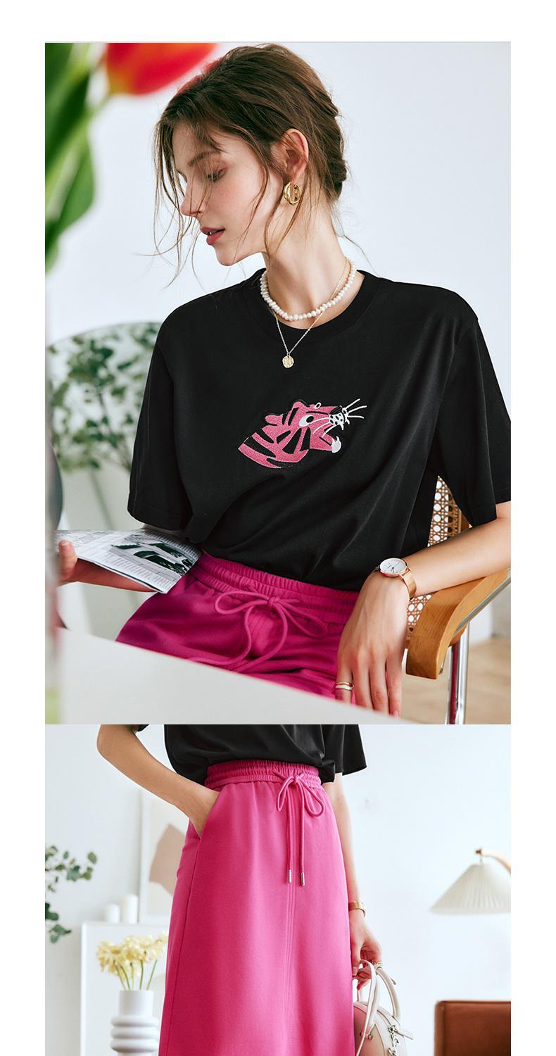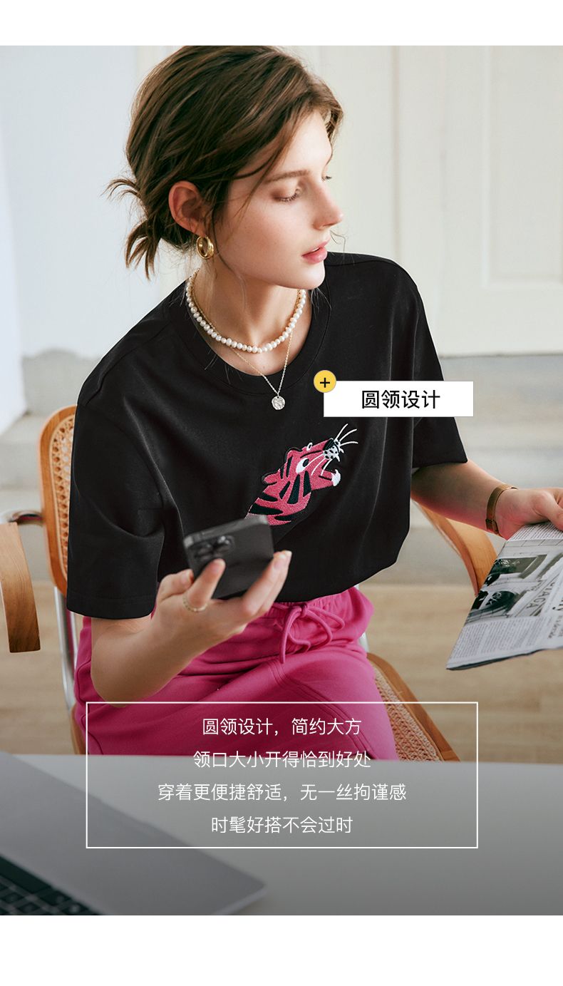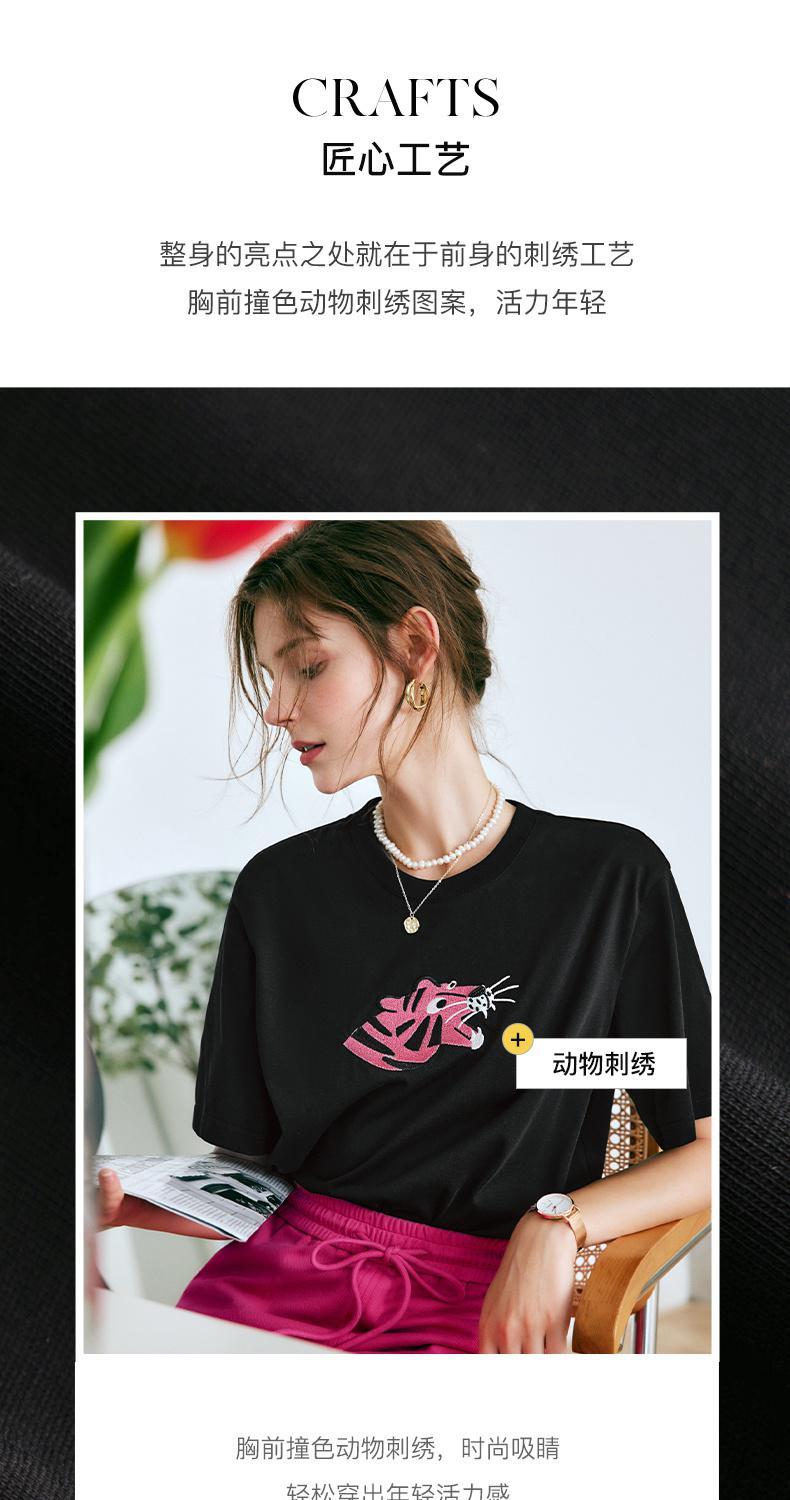 OLrain欧芮儿法式短袖T恤女夏季2023年新款宽松时尚刺绣薄款上衣