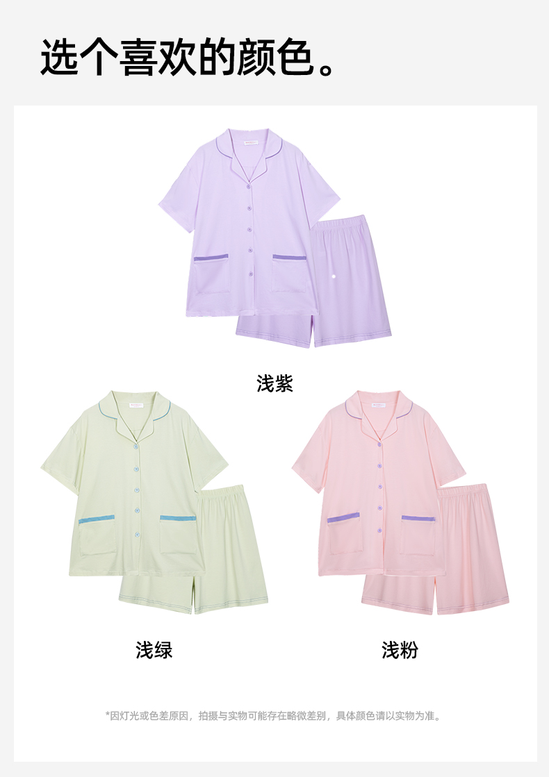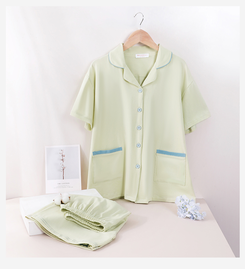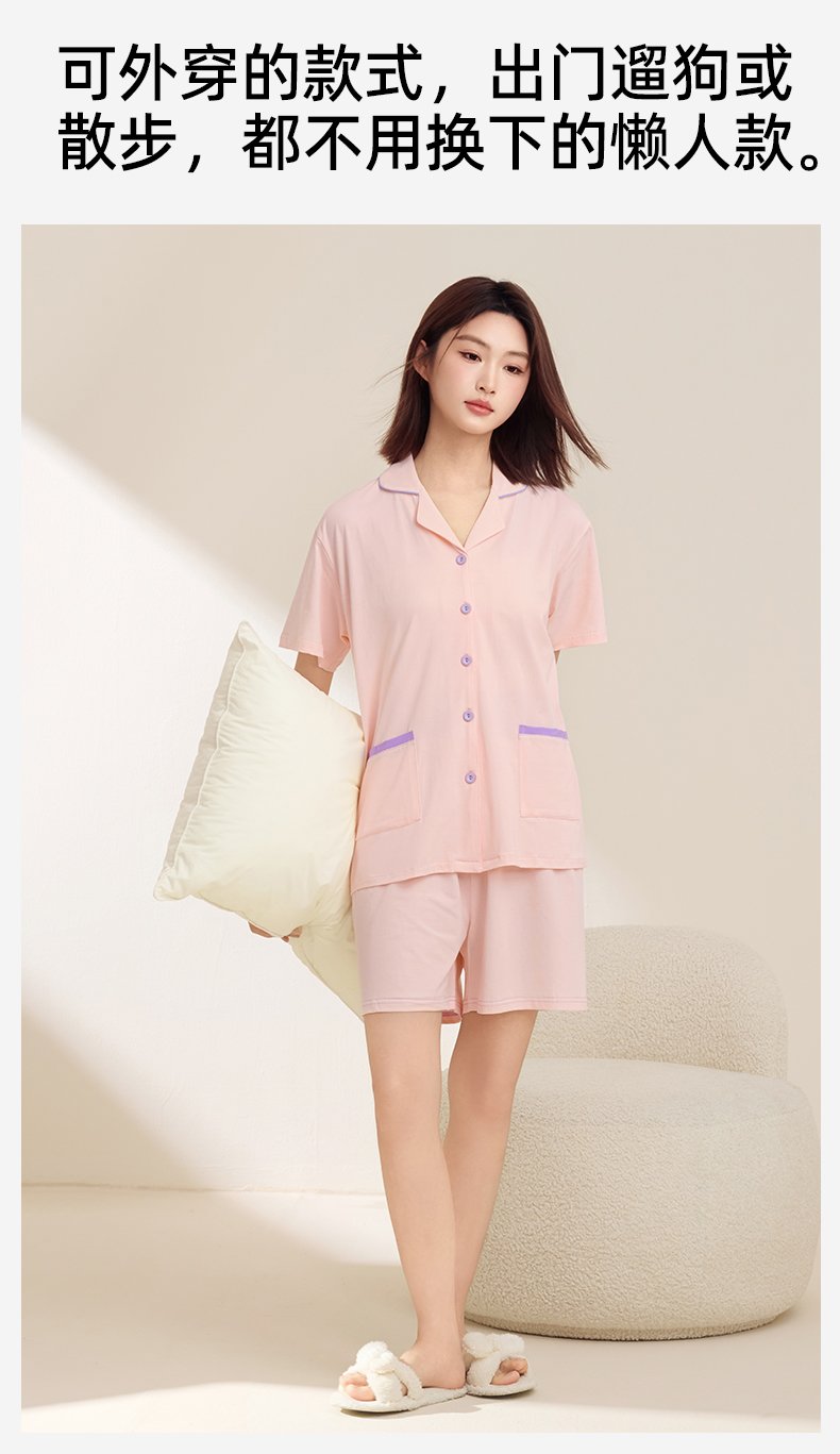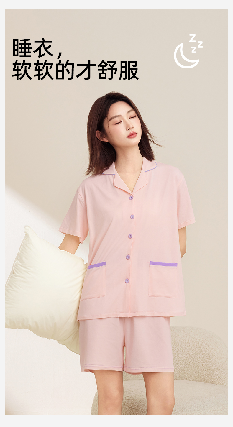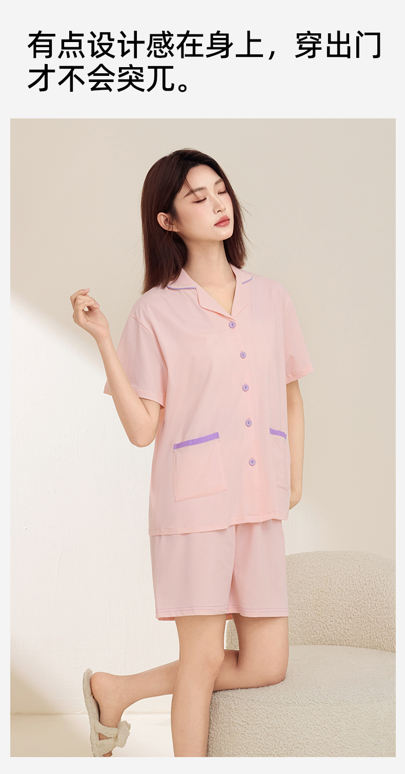 熳洁儿 情侣款家居服95棉开衫短袖套装简约纯色24253215/24253903