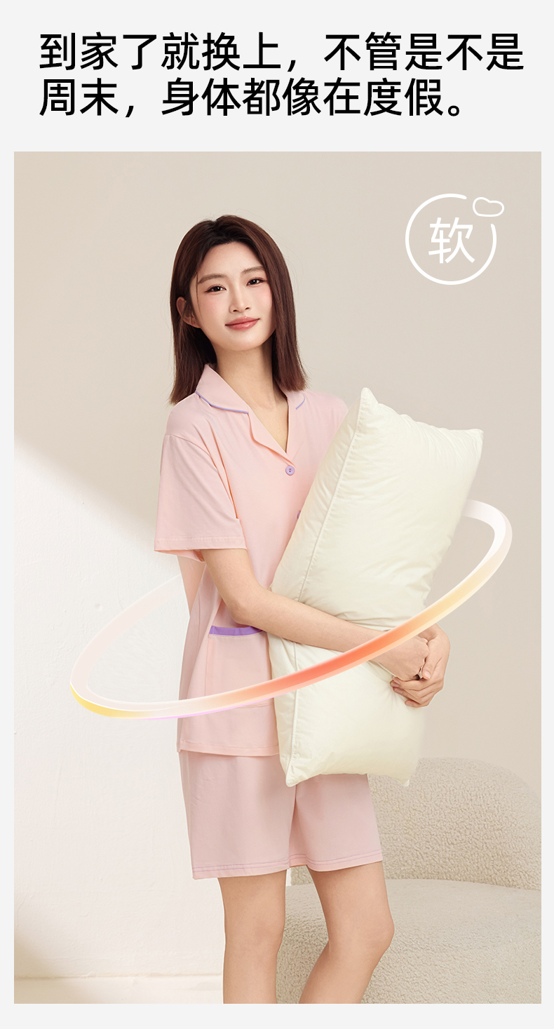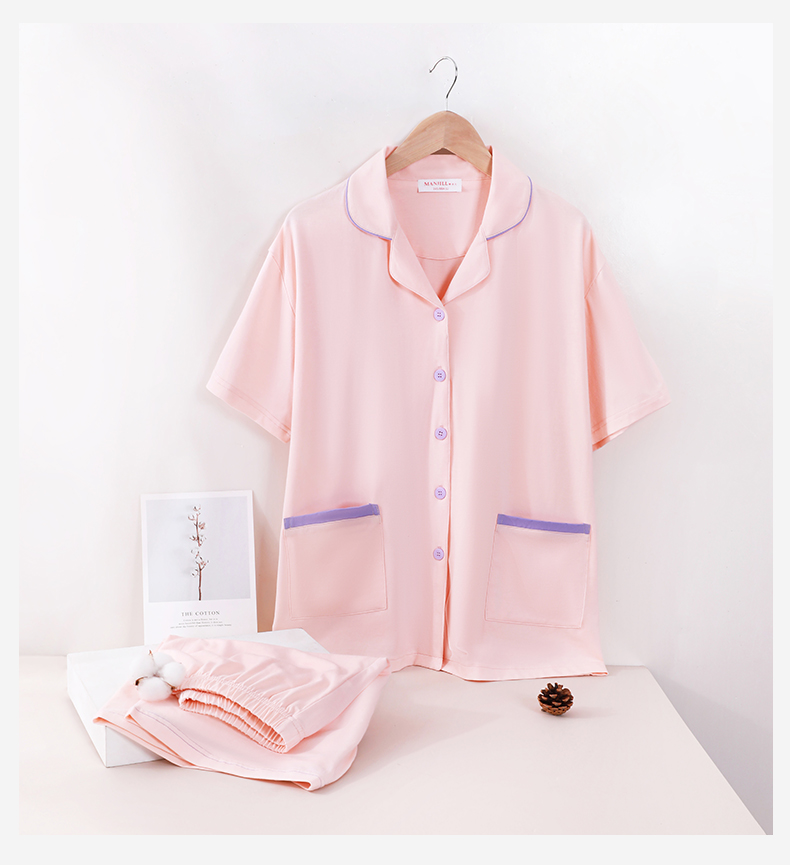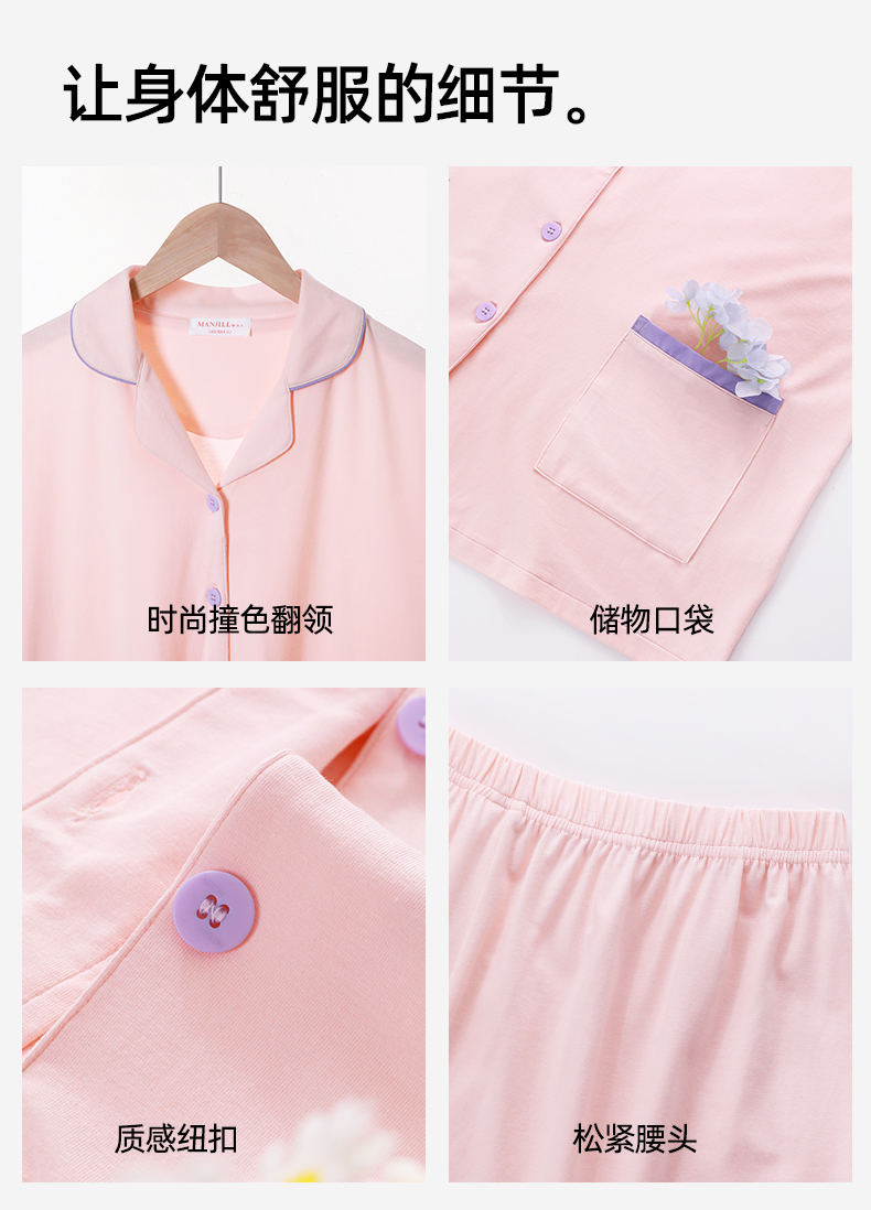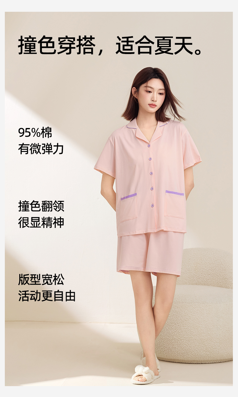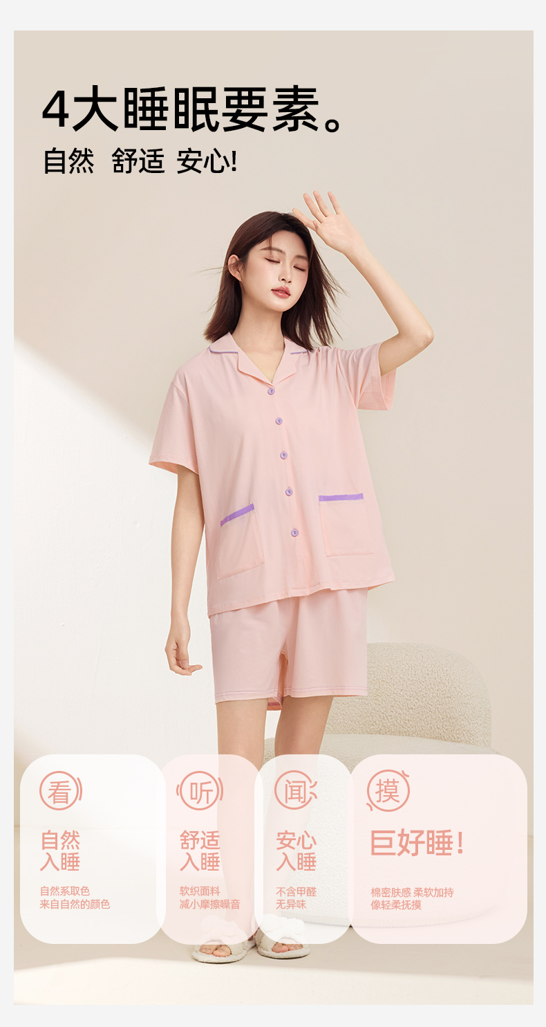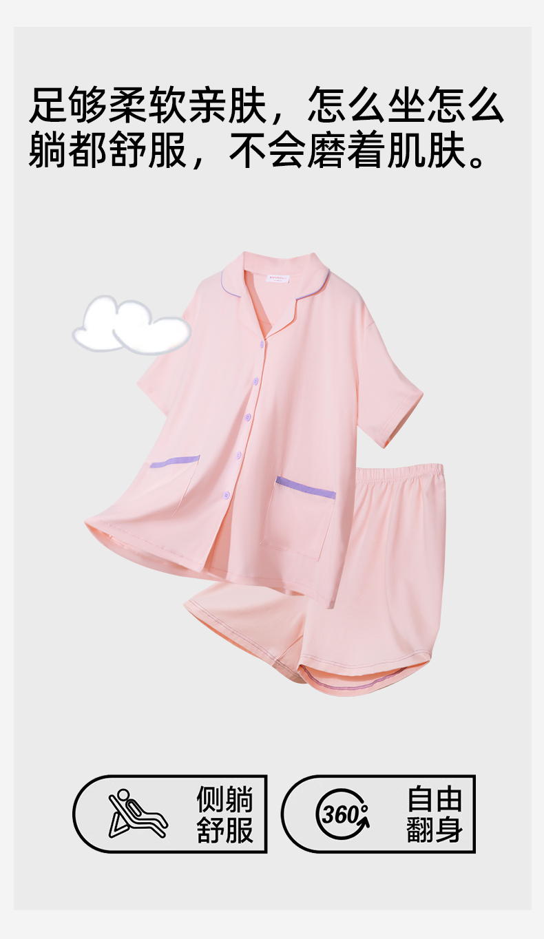 熳洁儿 情侣款家居服95棉开衫短袖套装简约纯色24253215/24253903