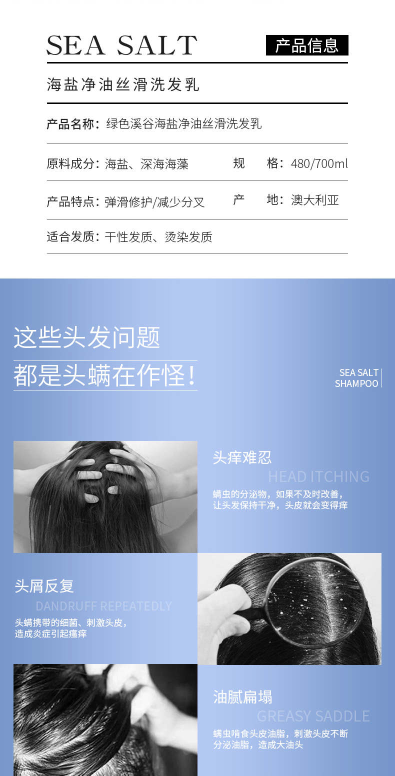绿色溪谷海盐净油丝滑洗发乳 700ml