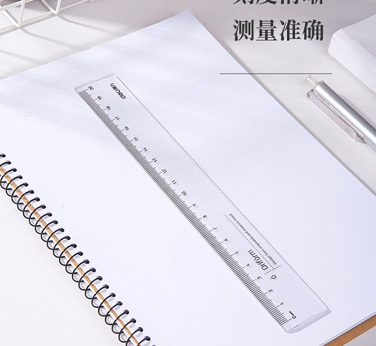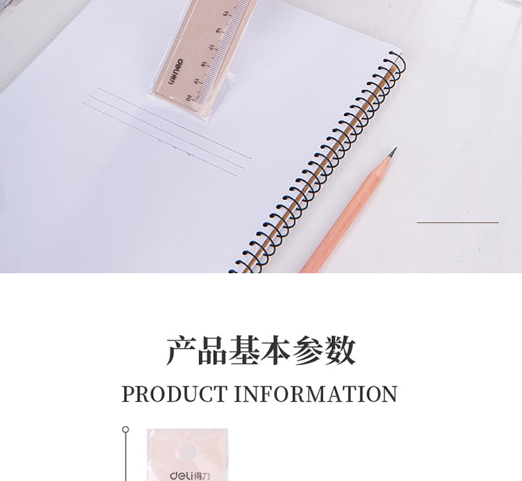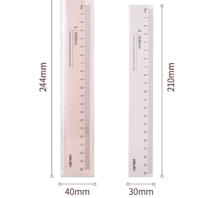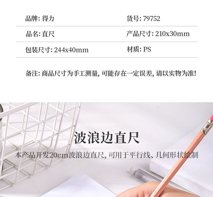 得力(deli)透明20cm学生直尺 考试绘图制图波浪边尺子 79752