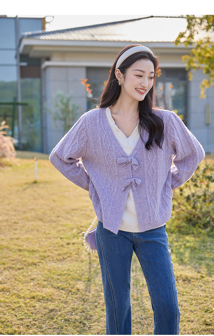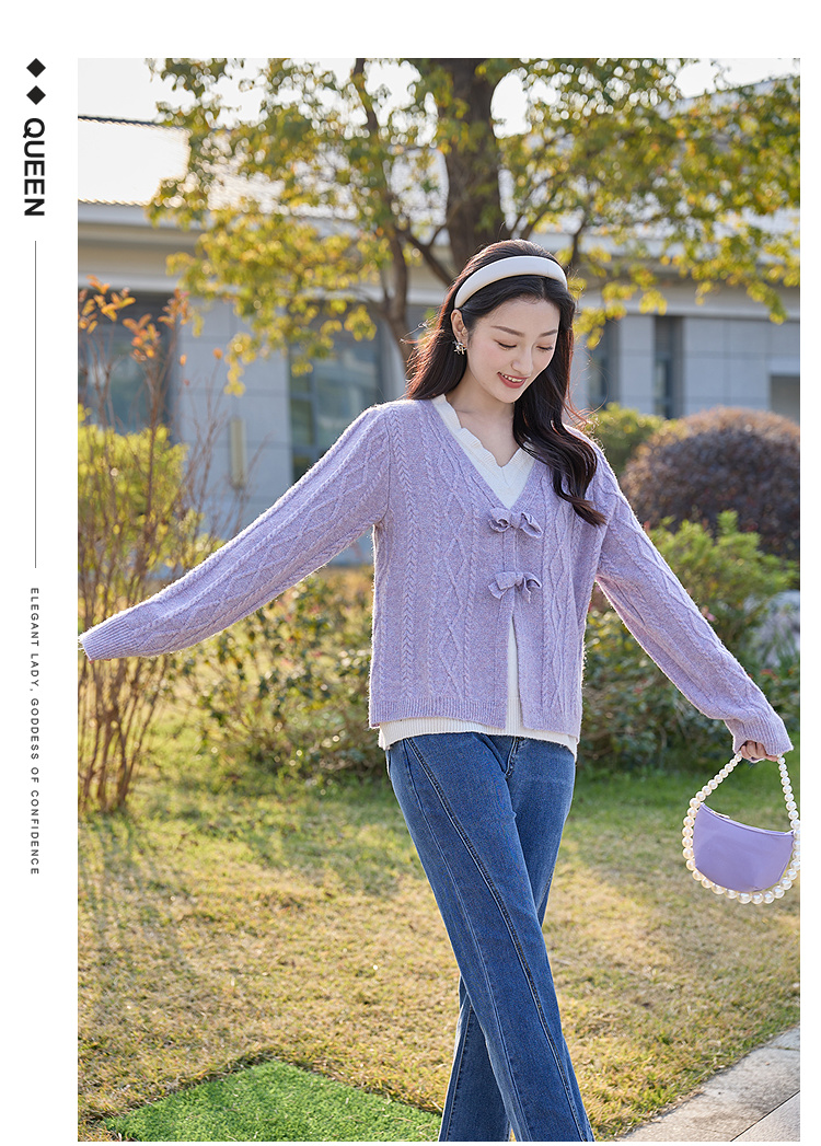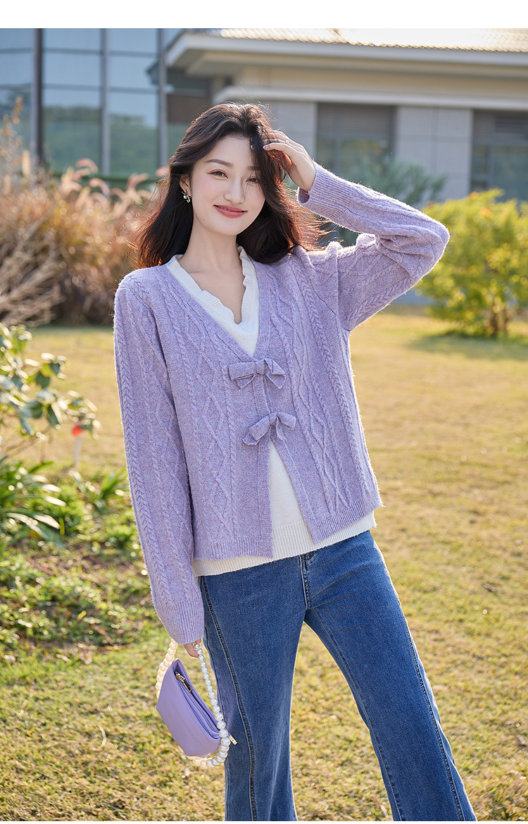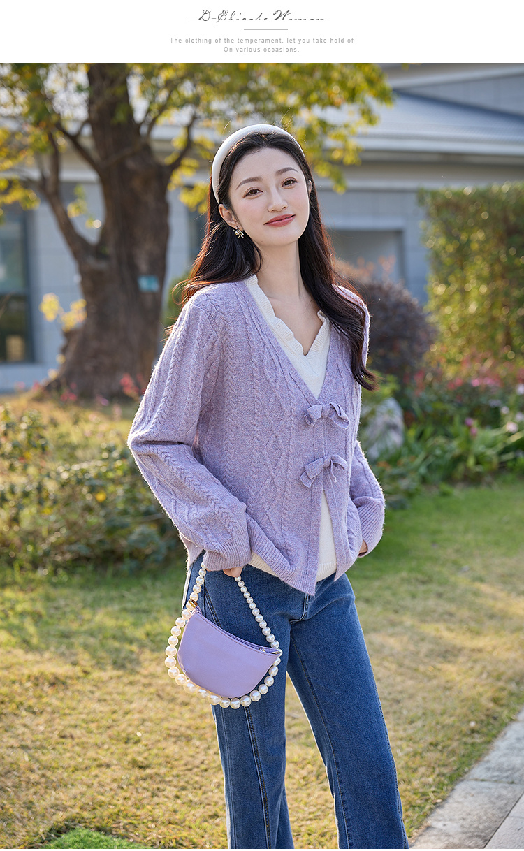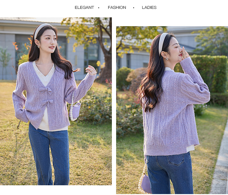奢姿大码女装2025冬季毛衣蝴蝶结装饰针织衫胖妹妹气质温柔上衣9854670751