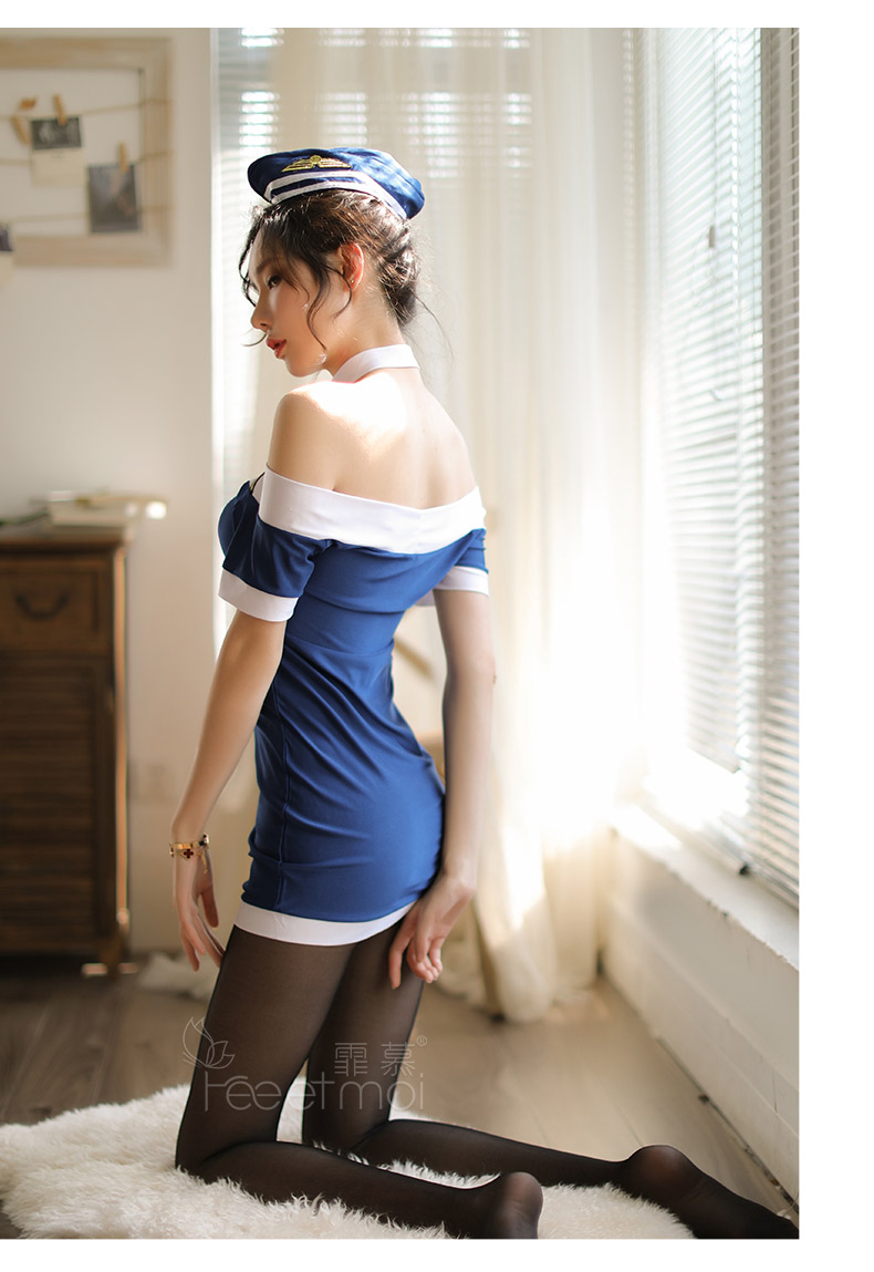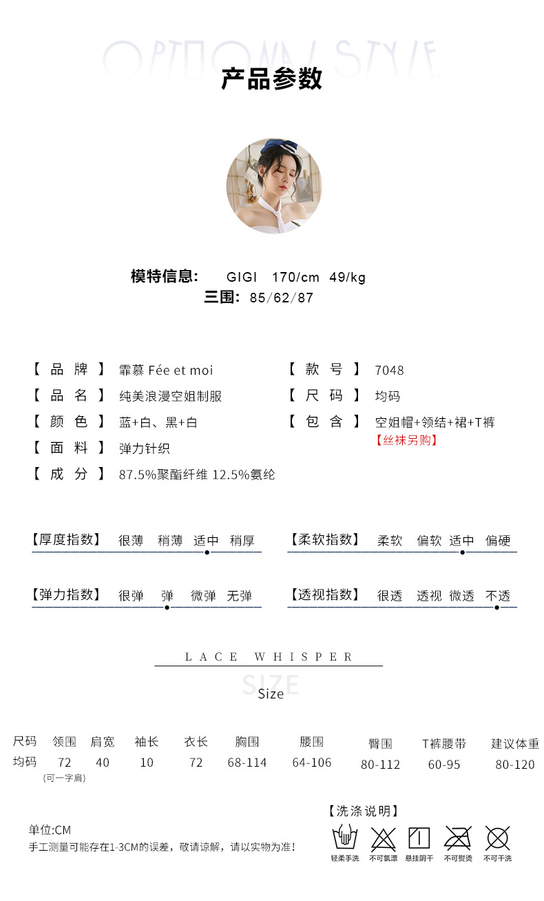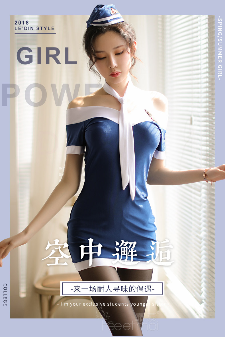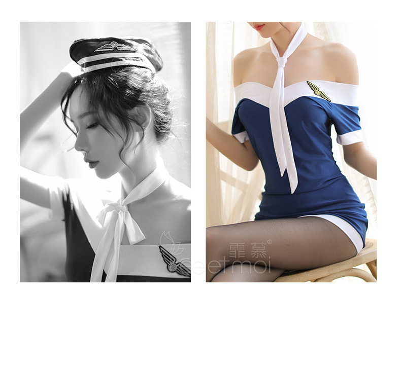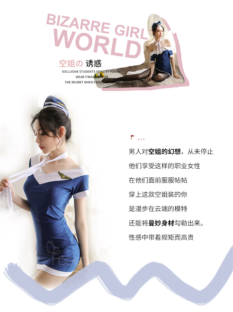 【空中堡垒】清新 情趣内衣 空姐 制服 空姐帽子 套装不含丝袜 透视 衣服 性感 7048