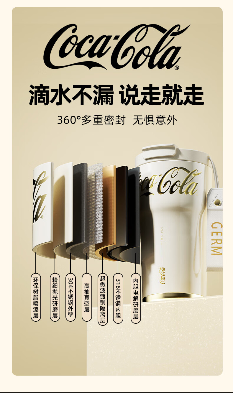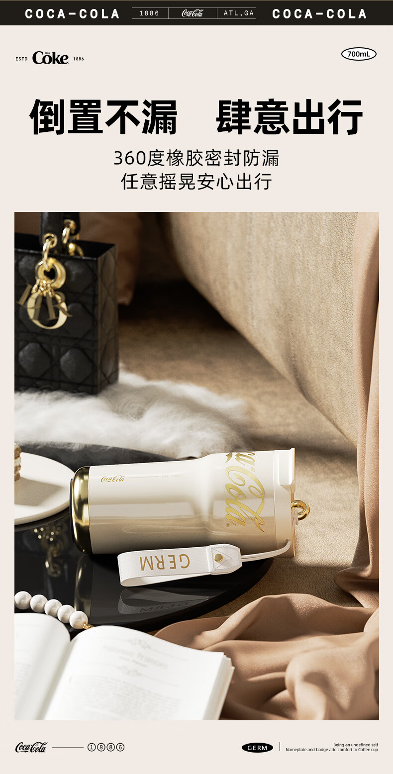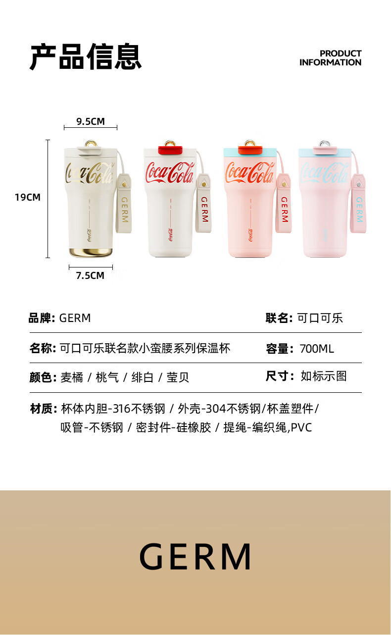 【分仓直发包邮】GERM格沵可口可乐联名款小蛮腰系列保温杯700ml(绯白/莹贝/桃气)GE-CK23AW-B79