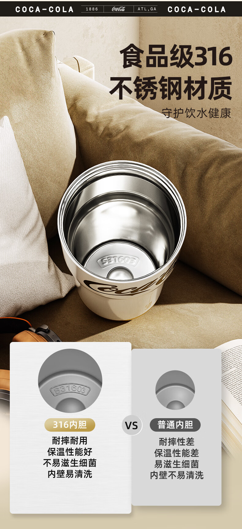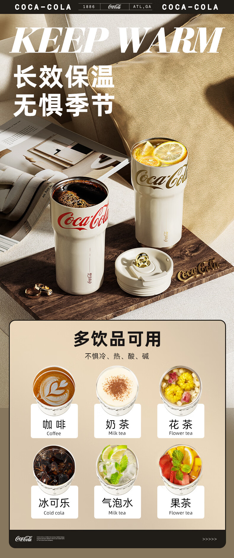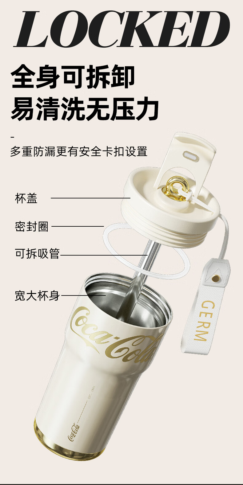 【分仓直发包邮】GERM格沵可口可乐联名款小蛮腰系列保温杯700ml(绯白/莹贝/桃气)GE-CK23AW-B79