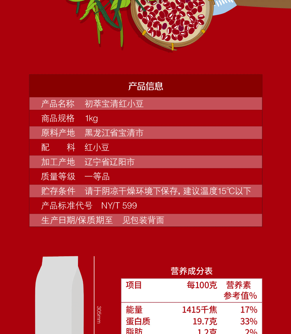中粮初萃宝清红小豆1kg 五谷杂粮 粗粮
