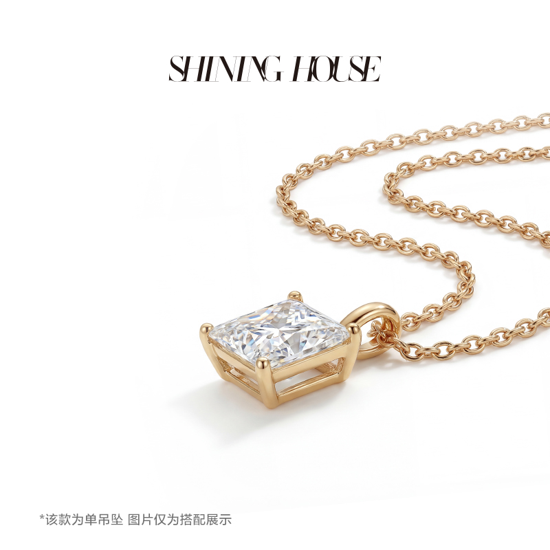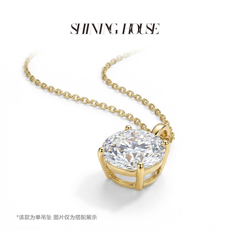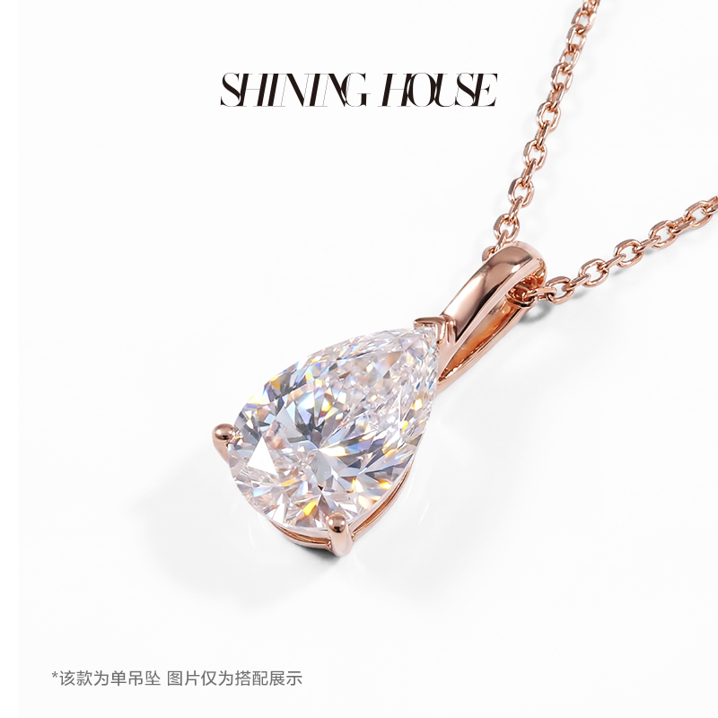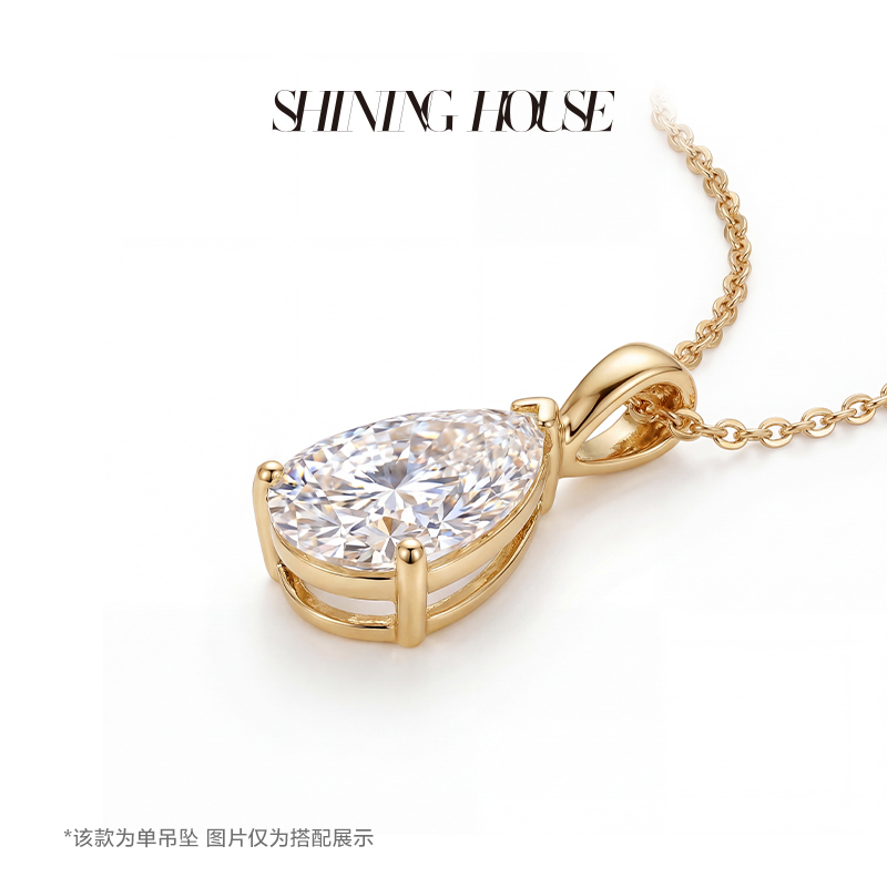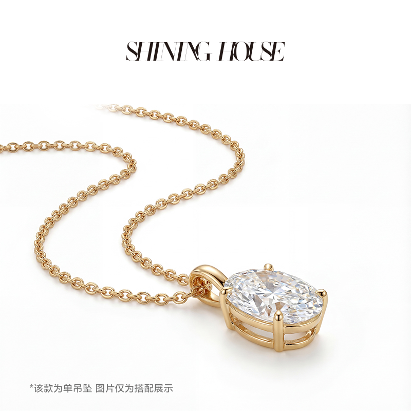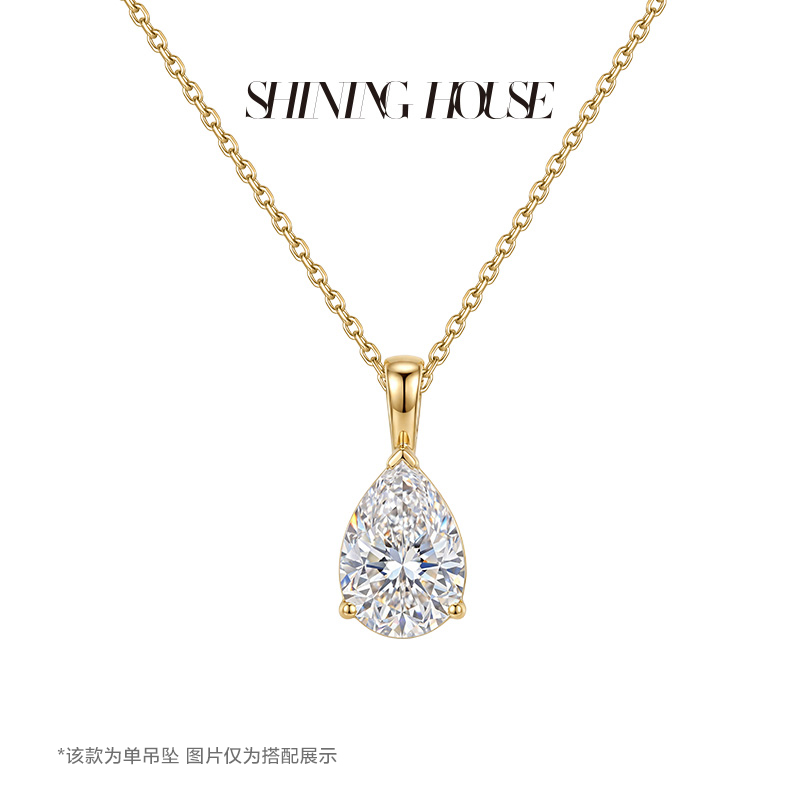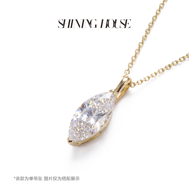 Ease·Shining系列 ShiningHouse[培育] 18k金钻石吊坠 圆钻形椭圆形水滴形公主方形心形马眼形人工真钻人造钻石K金吊坠简约钻石吊坠【此商品不支持7天无理由退货退款】(单吊坠)