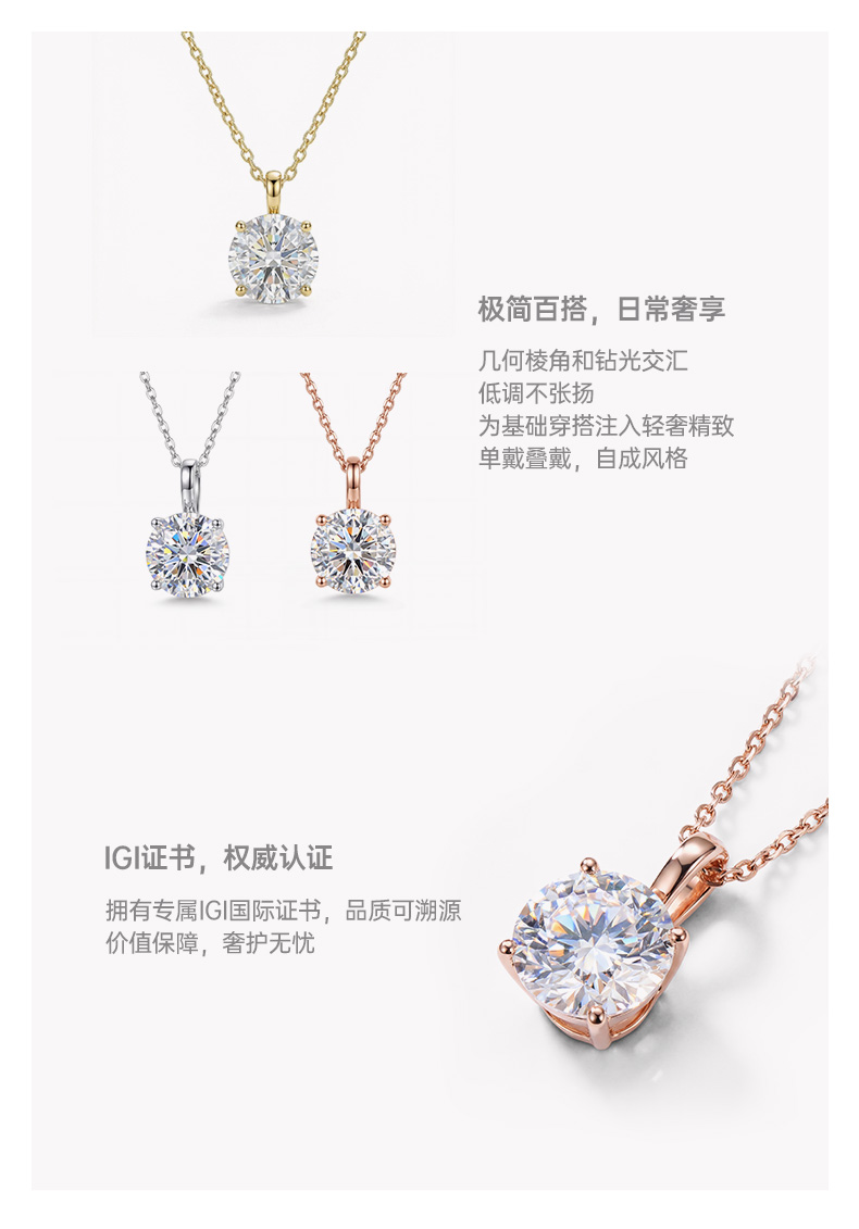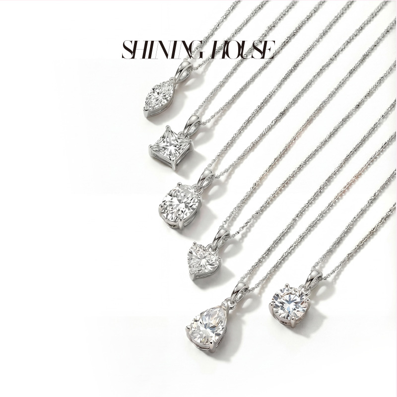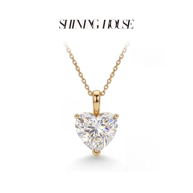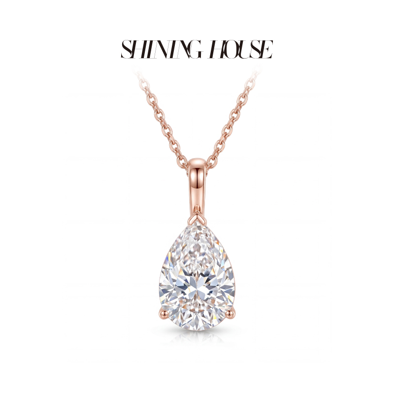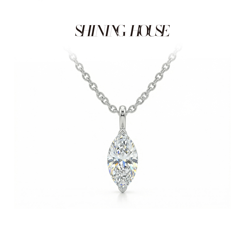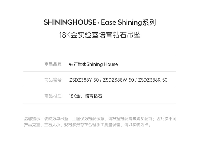 Ease·Shining系列 ShiningHouse[培育] 18k金钻石吊坠 圆钻形椭圆形水滴形公主方形心形马眼形人工真钻人造钻石K金吊坠简约钻石吊坠【此商品不支持7天无理由退货退款】(单吊坠)