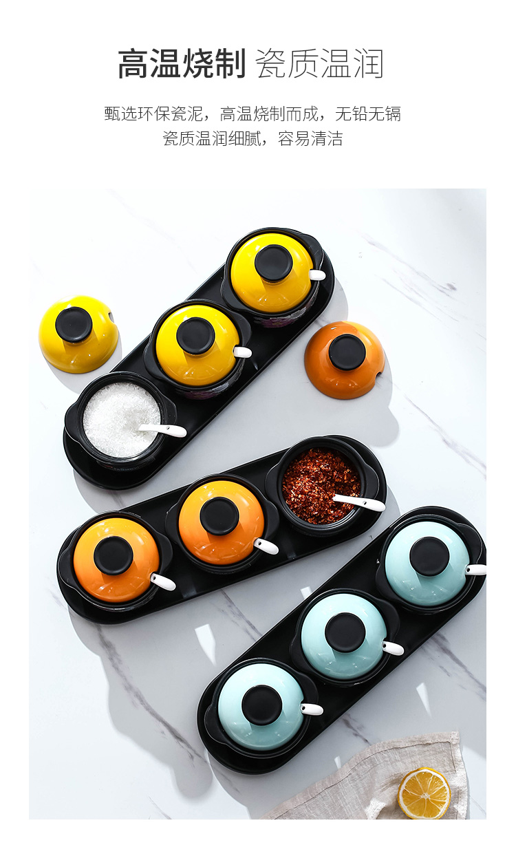 陶瓷调味罐时尚调料缸调味盒三件套调料盒