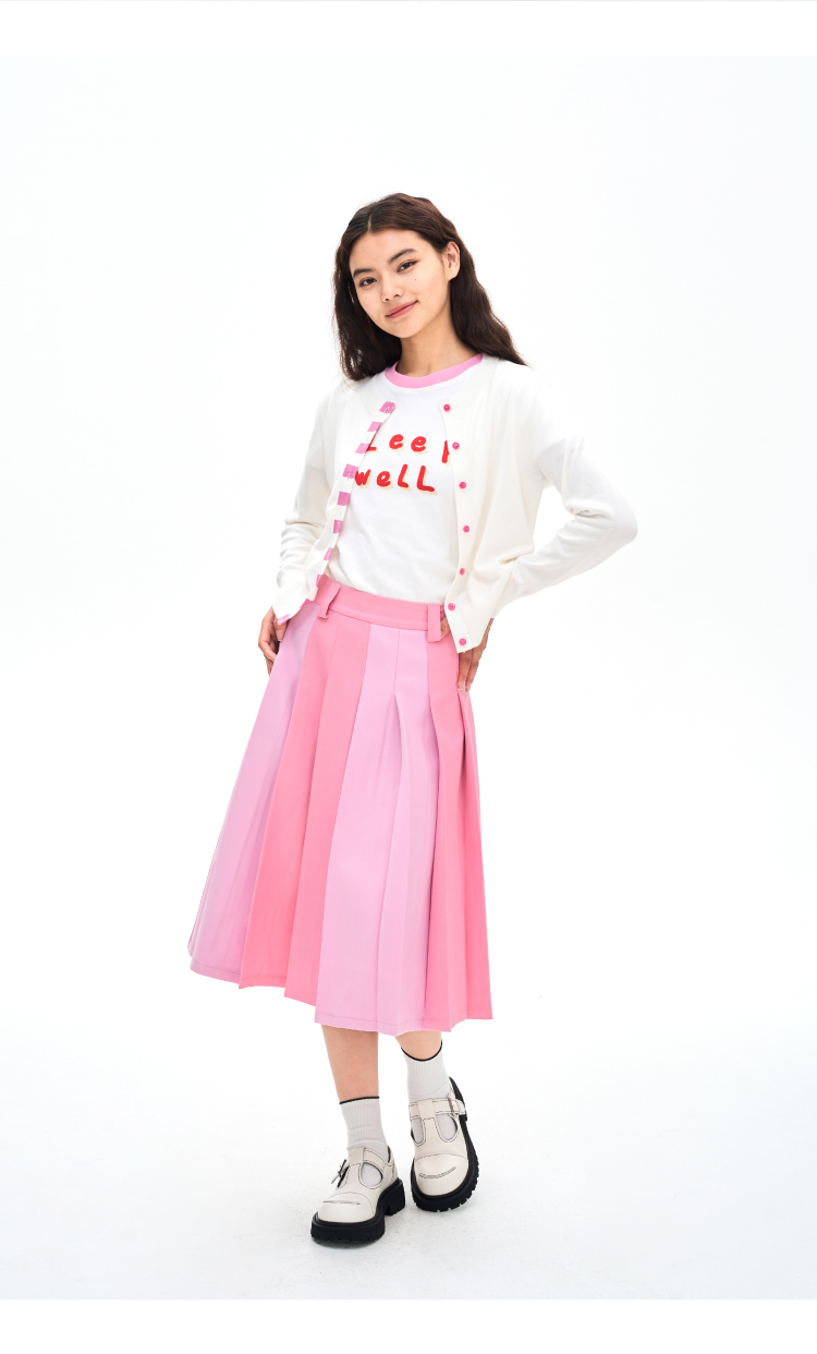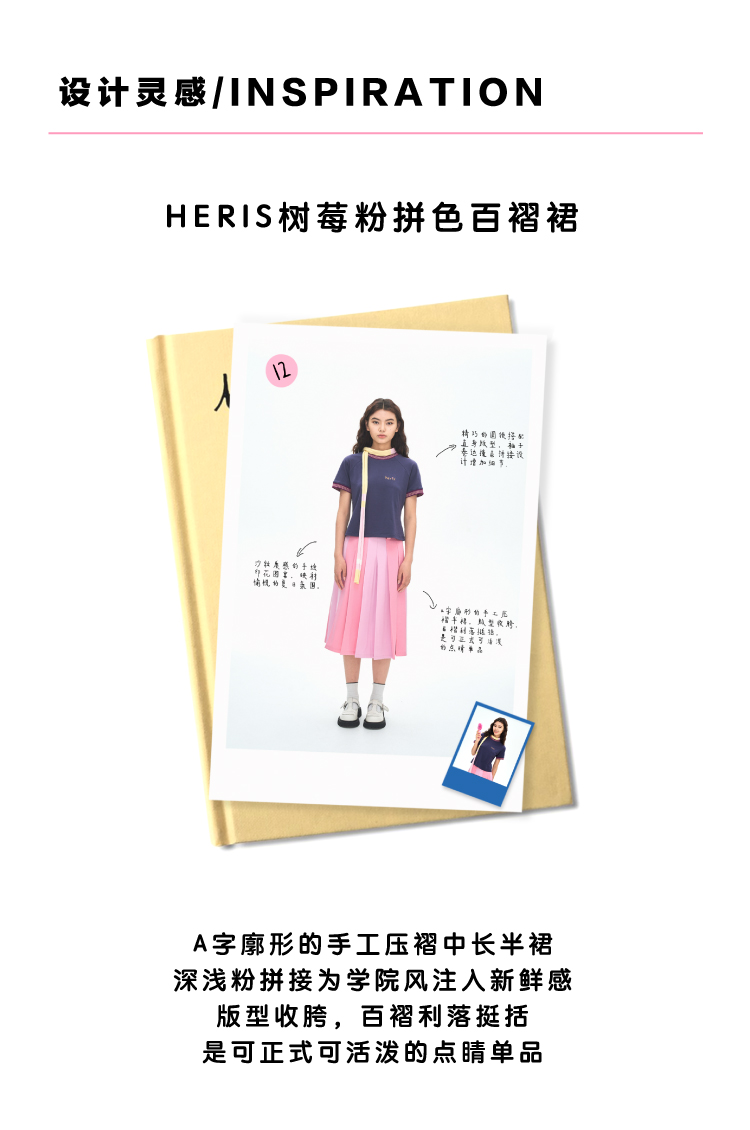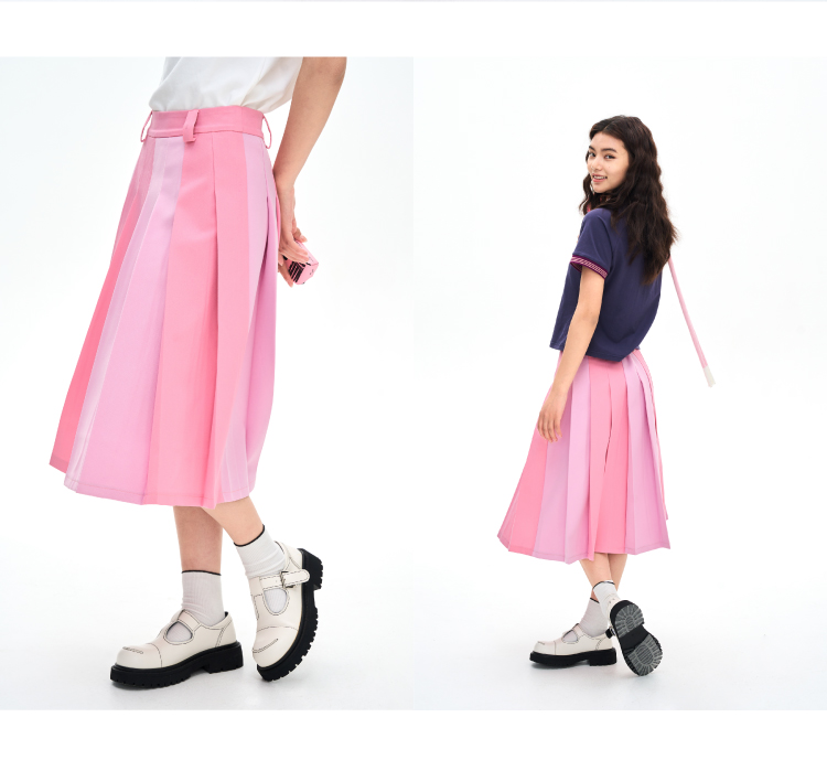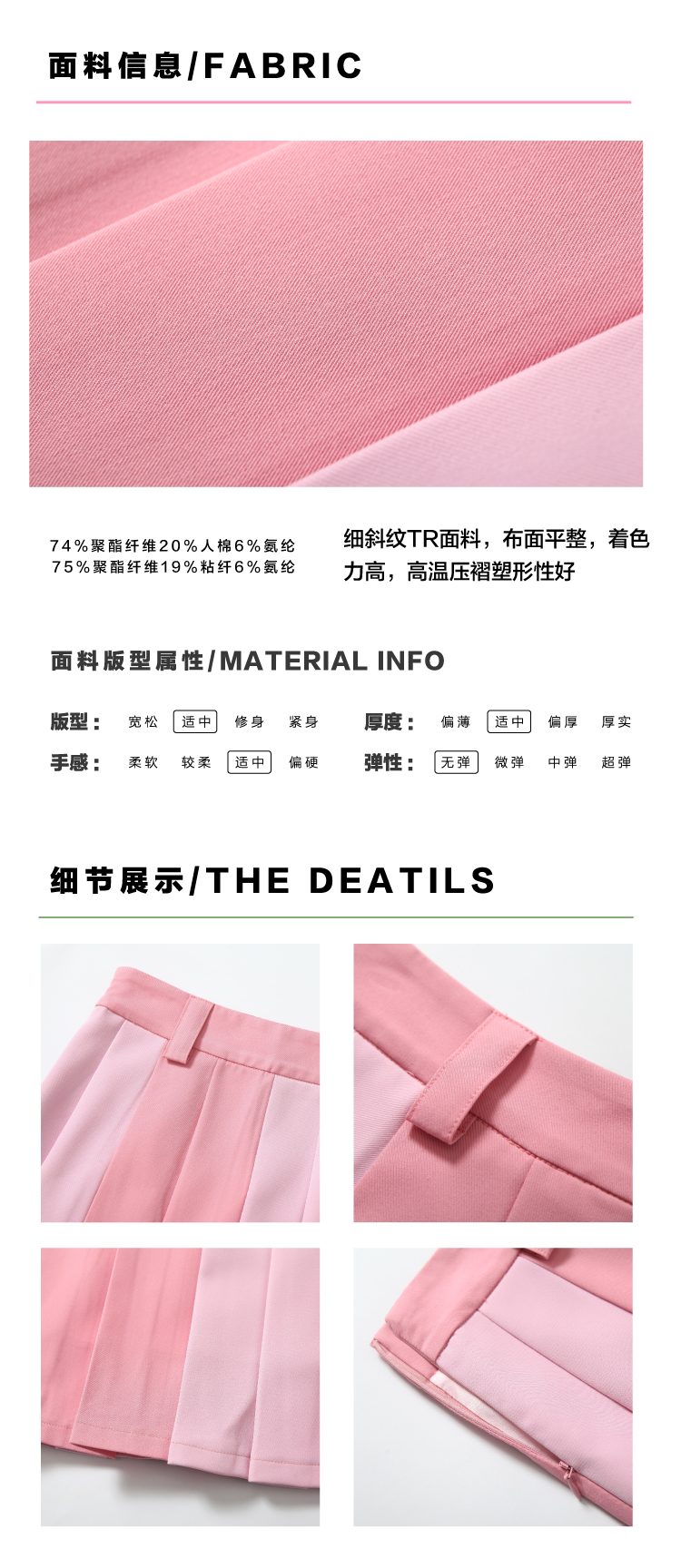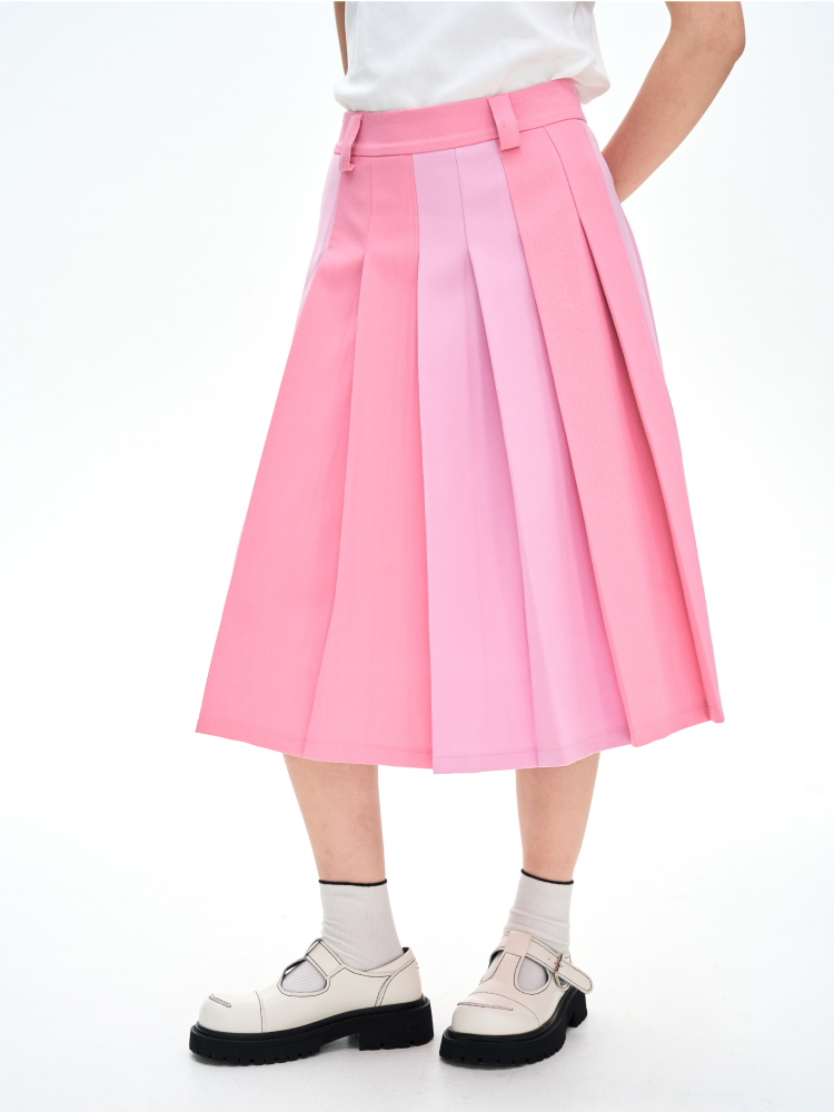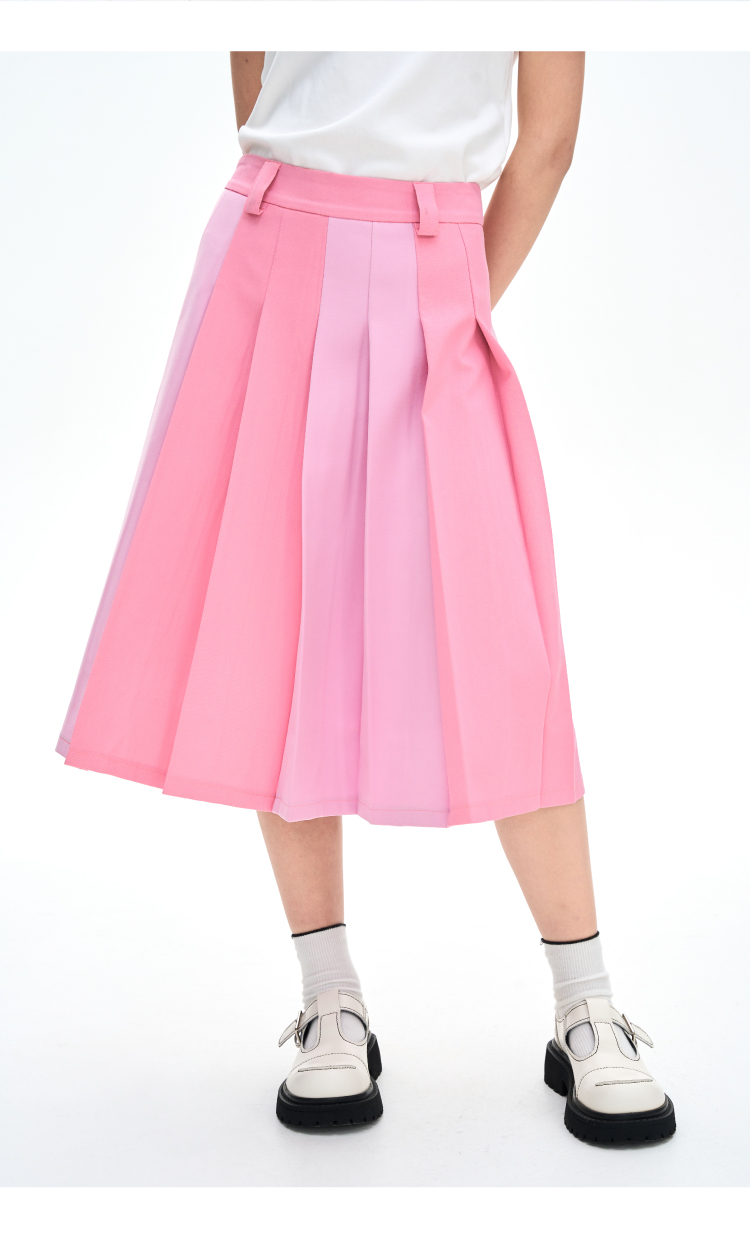 heris/H42108/树莓粉拼接设计 学院通勤A摆 收胯百褶裙