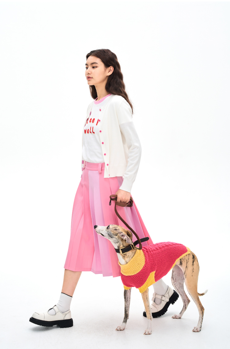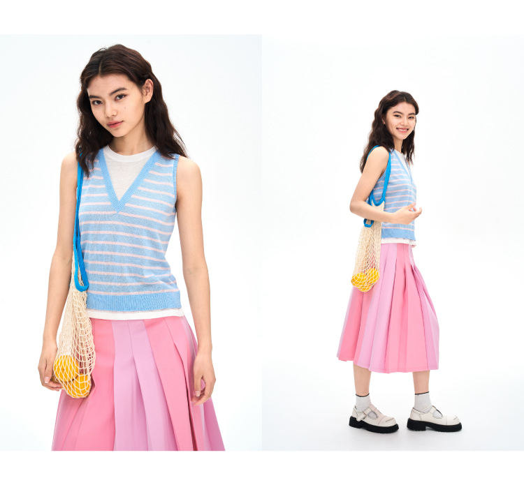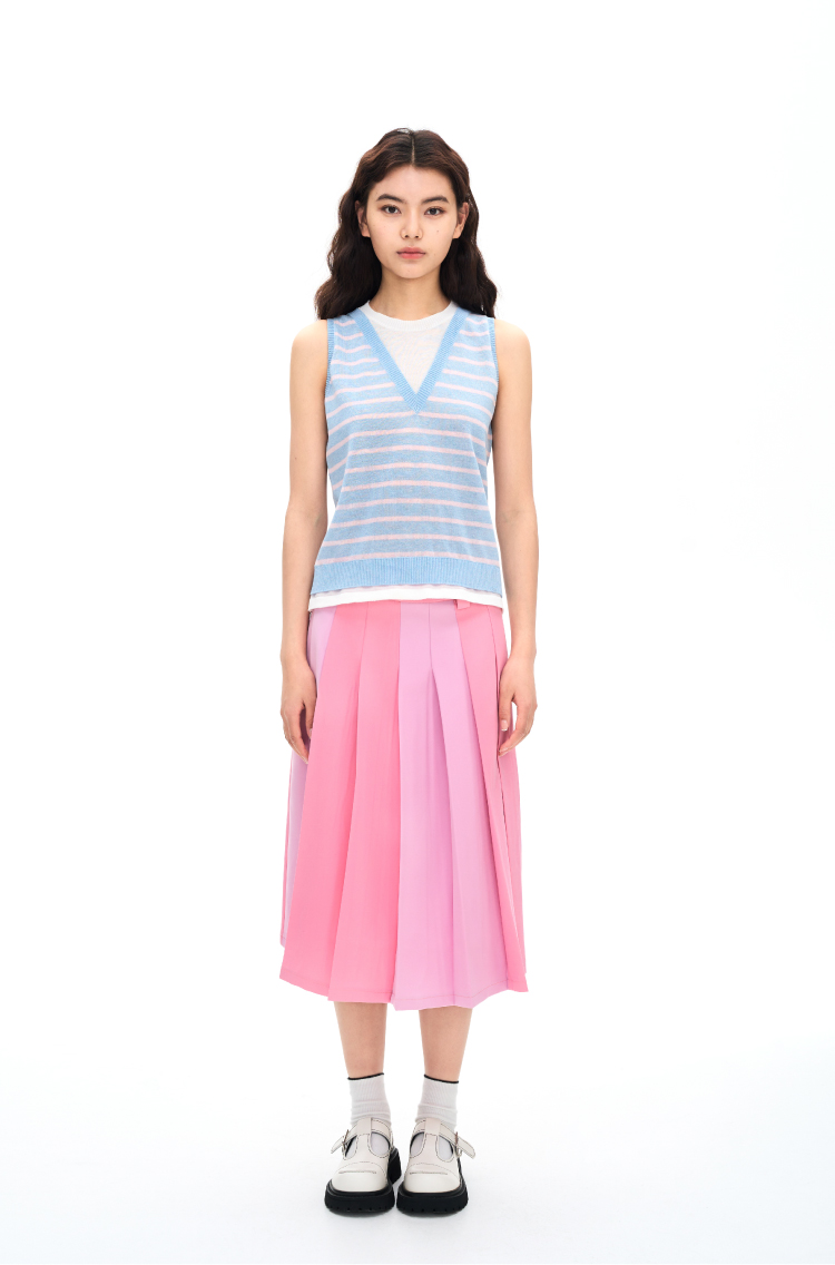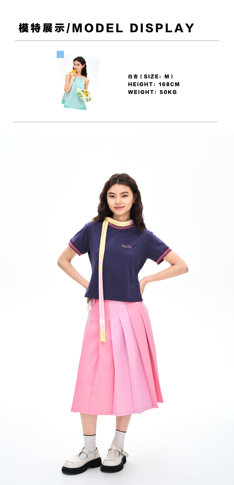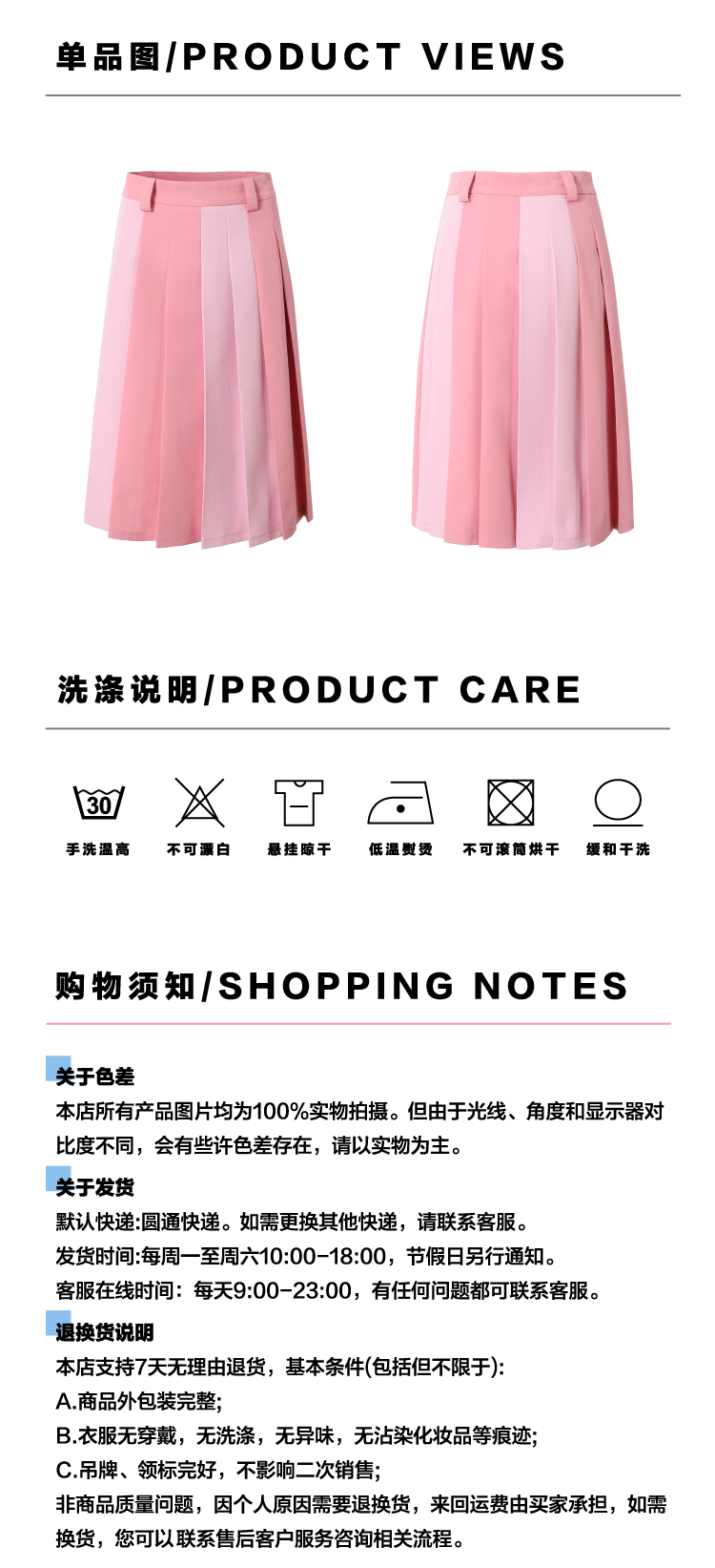 heris/H42108/树莓粉拼接设计 学院通勤A摆 收胯百褶裙