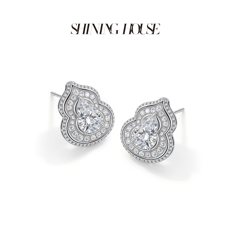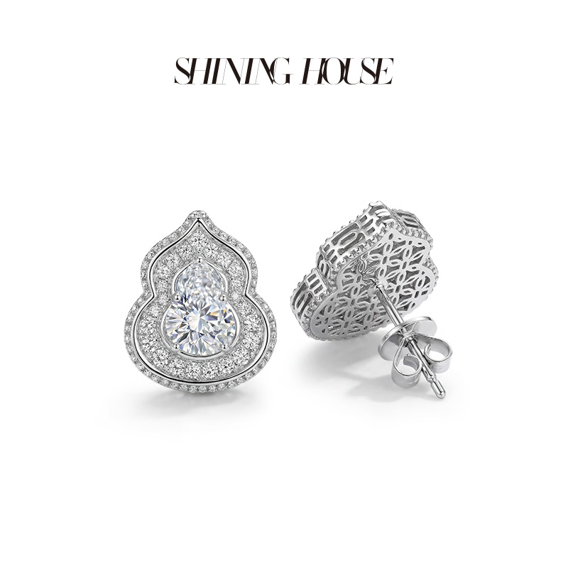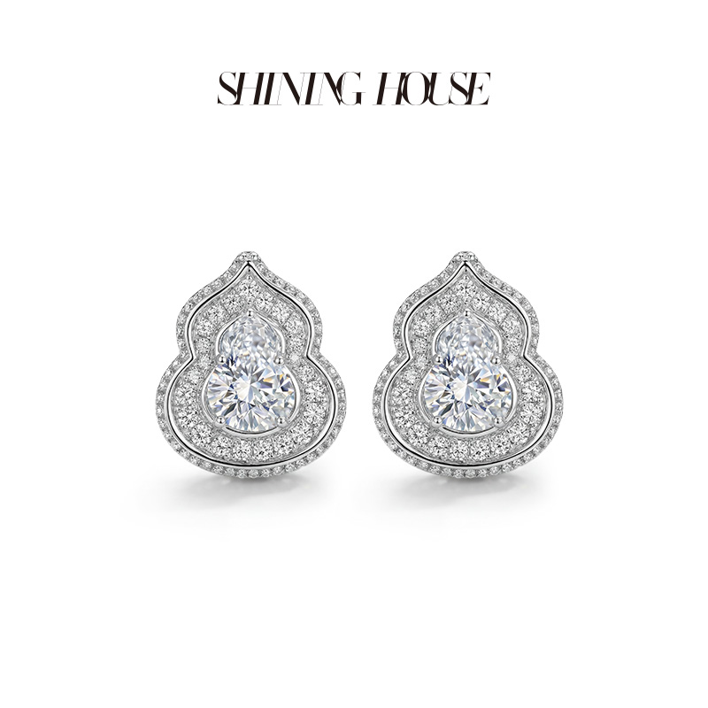 意趣东方系列 ShiningHouse[培育] 18K金钻石耳饰 葫芦形2克拉钻人工真钻人造钻石K金耳饰时尚钻石耳饰【此商品不支持7天无理由退货退款】预计3日发货