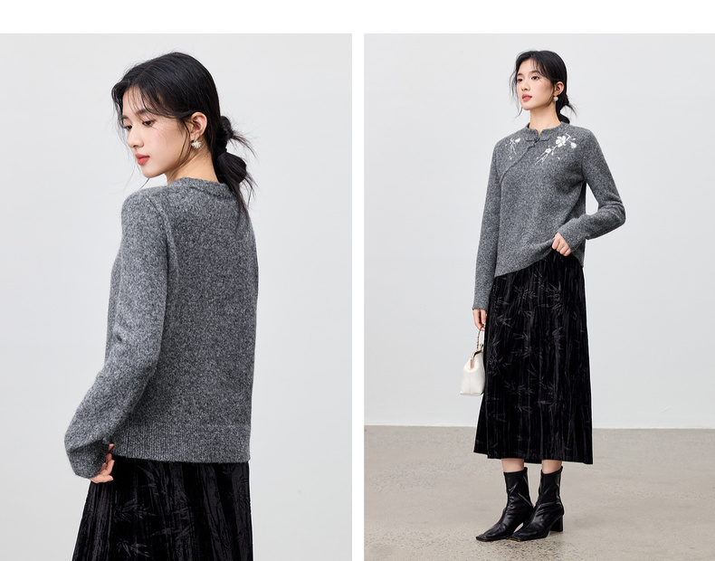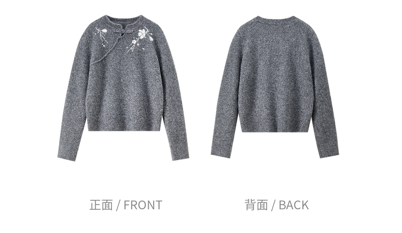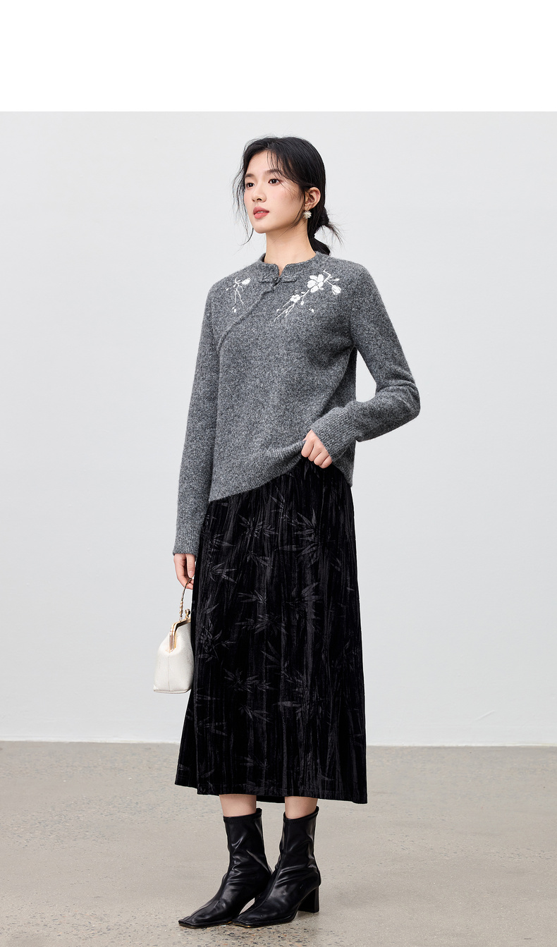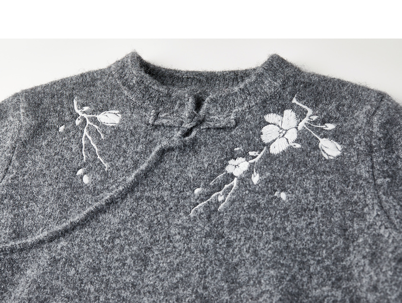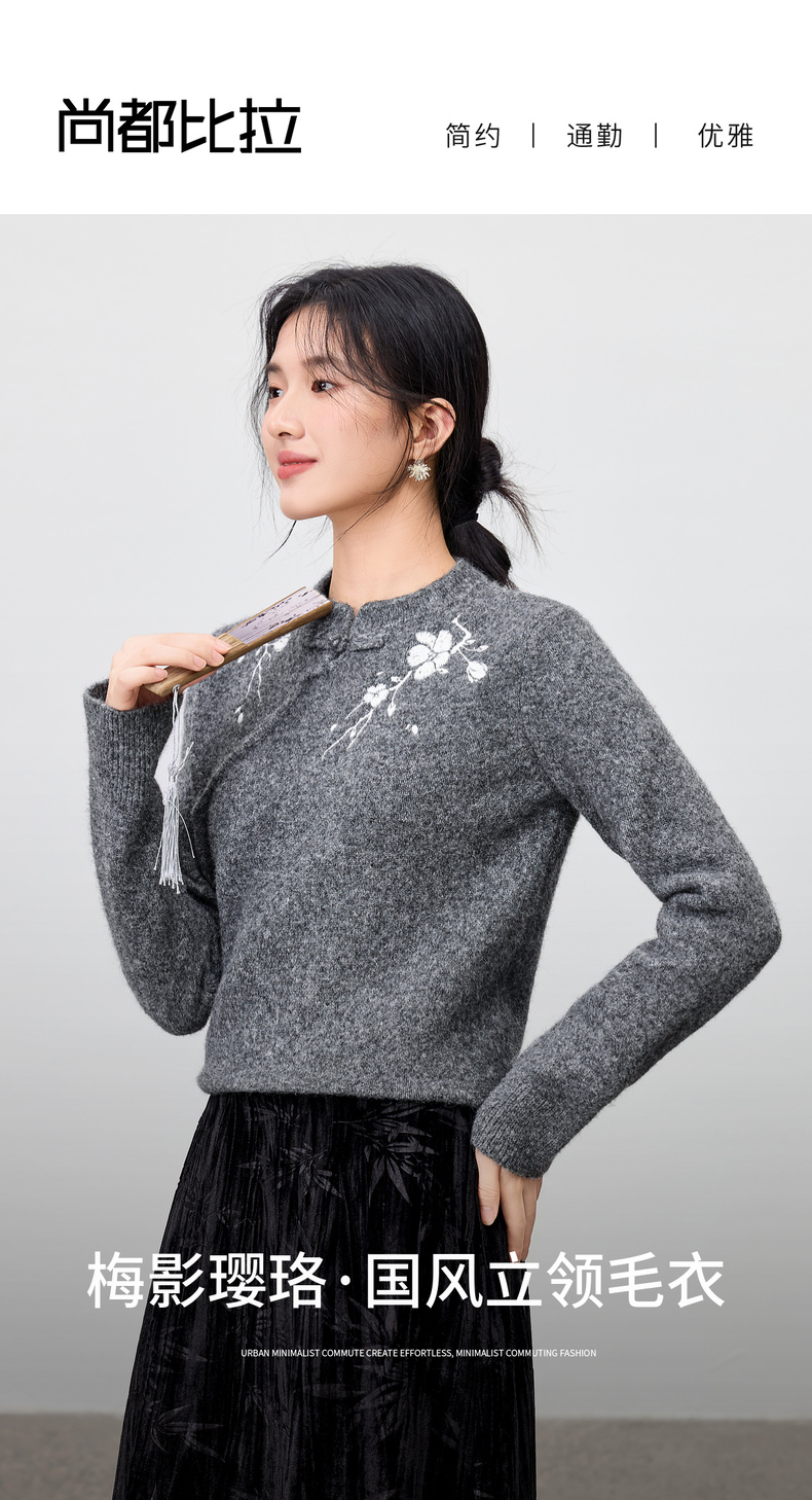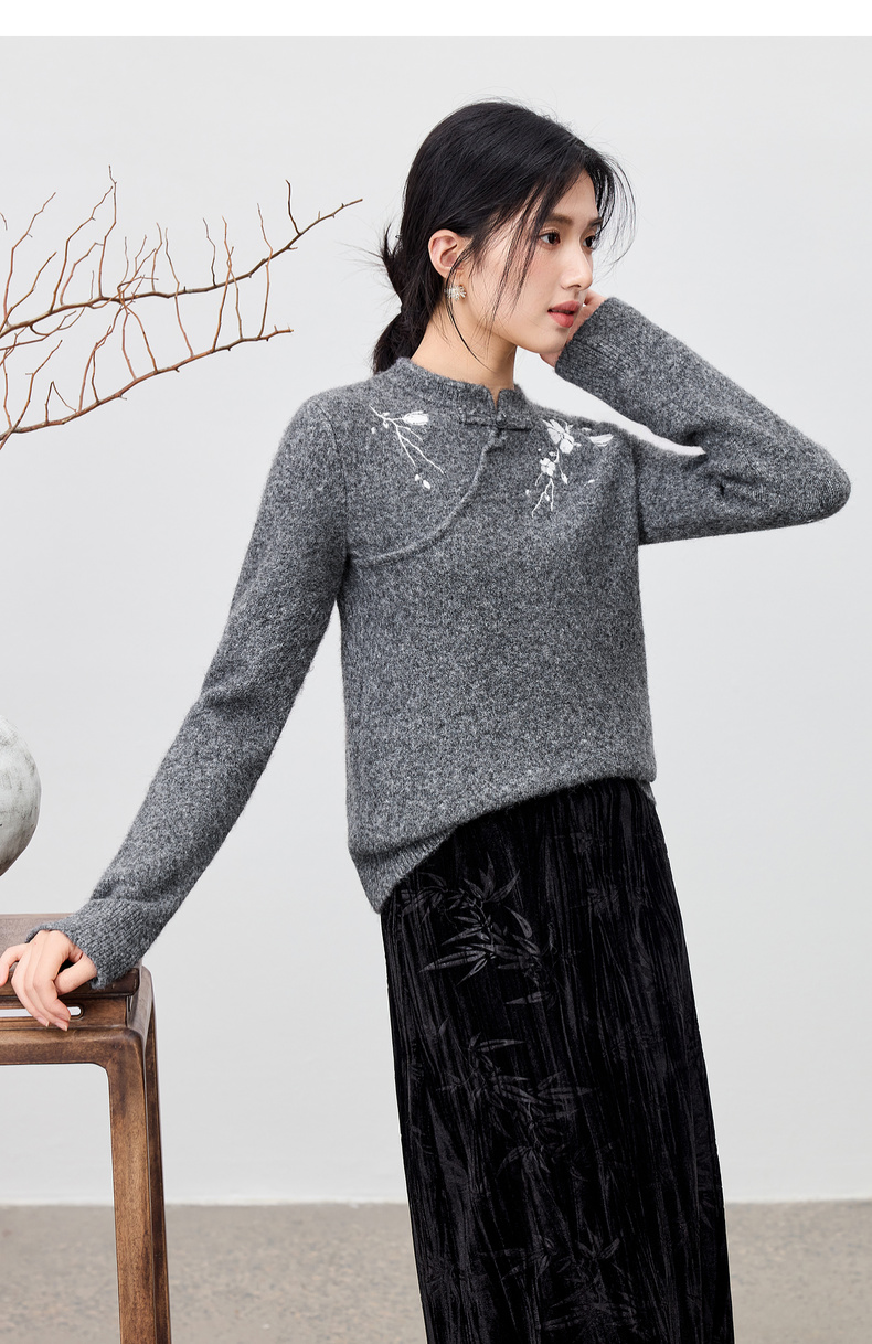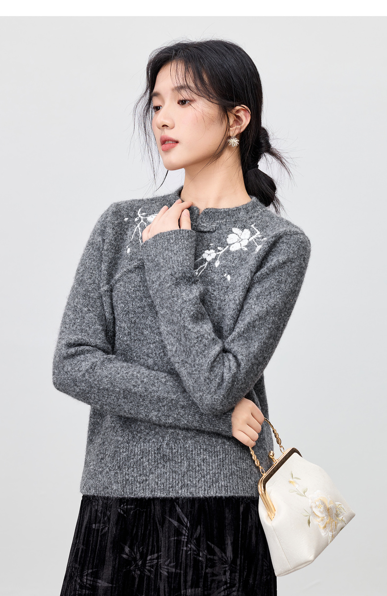 【内购】【梅影璎珞】国风立领斜襟盘扣装饰梅花刺绣含绵羊毛软糯厚毛衣-W54EA4232